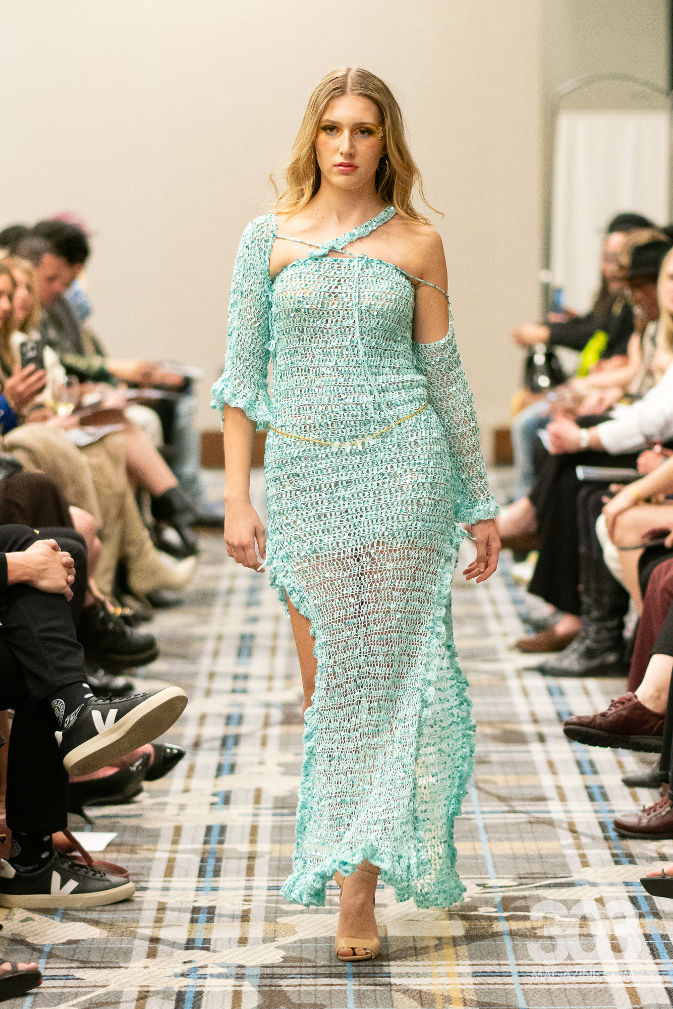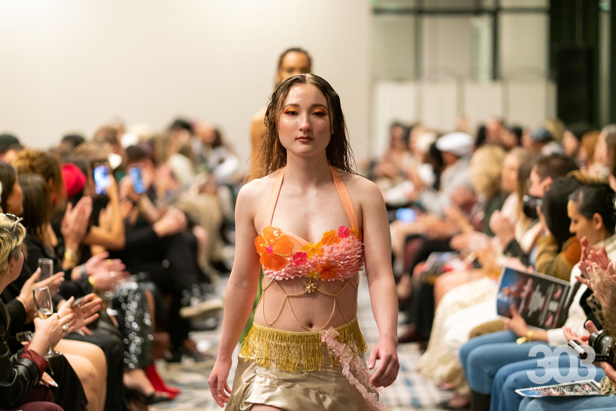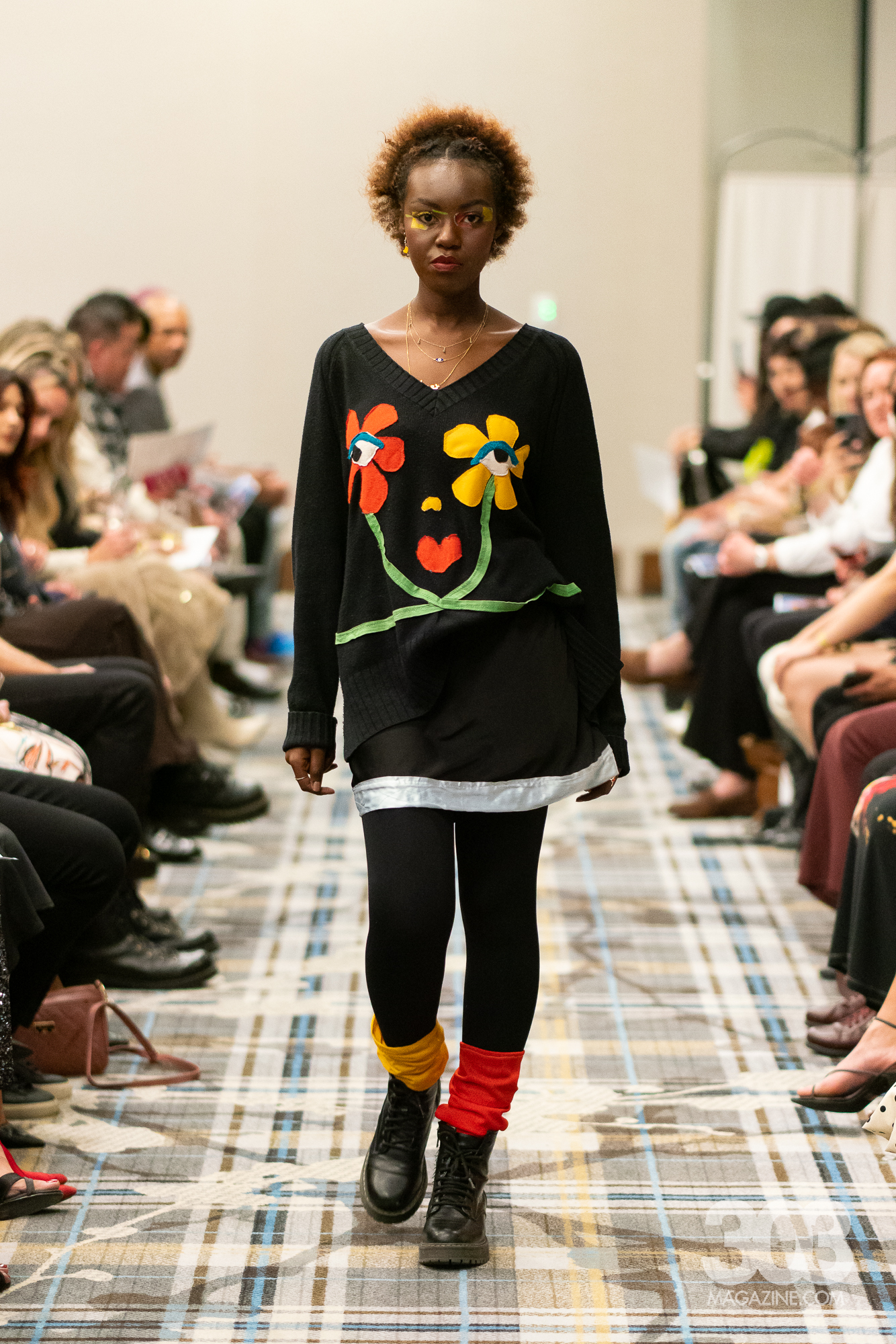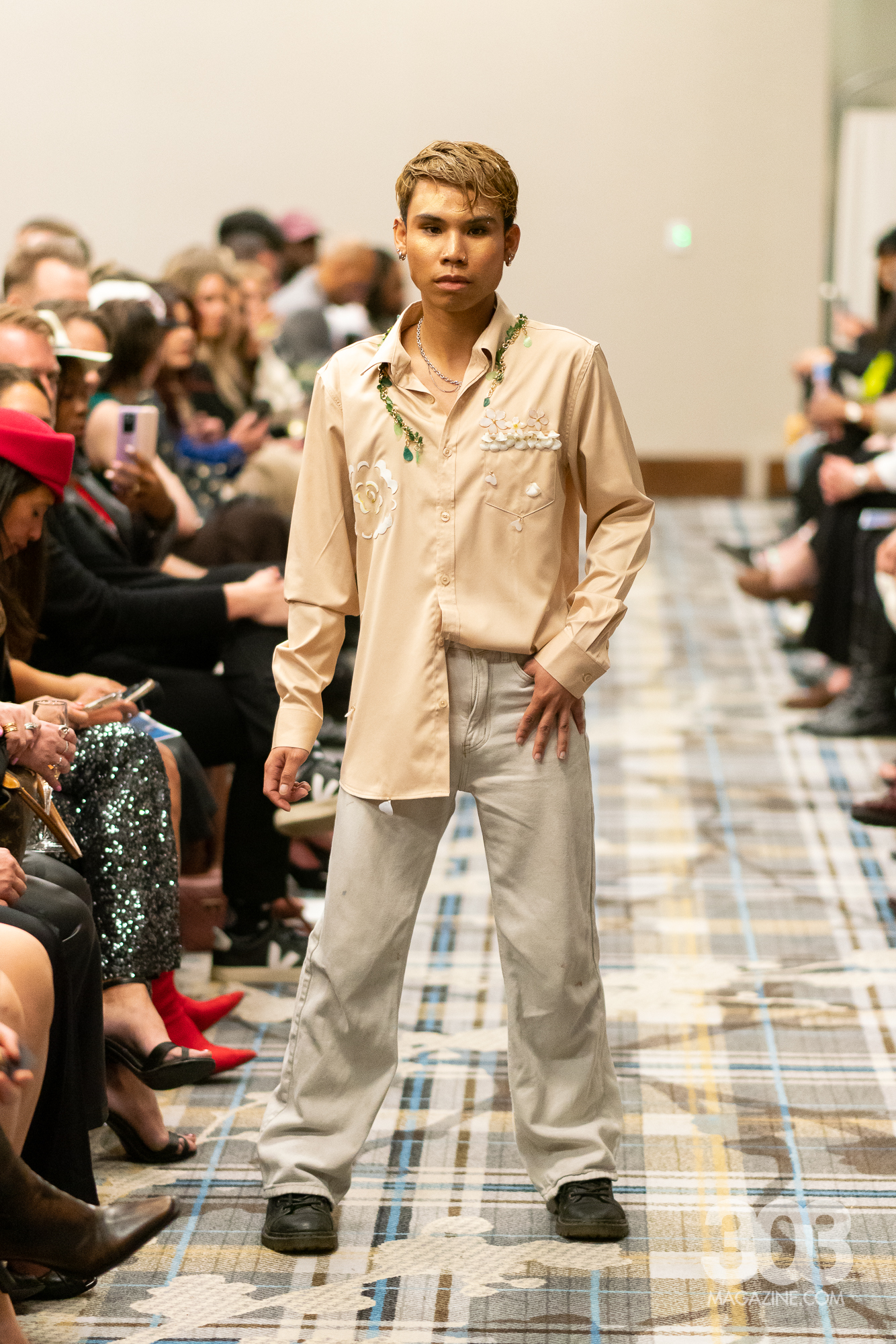 Make You Sparkle aka Kay Trejo had custom knit and sparkling pieces float beautifully down the runway. Made up of sheer fabrics, bright colors and, of course, sparkle, these designs were made for all to feel confident and truly caught everyone’s attention — perfect for this upcoming spring/summer.