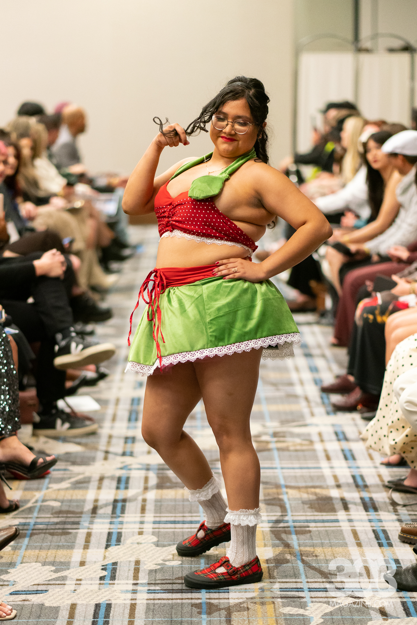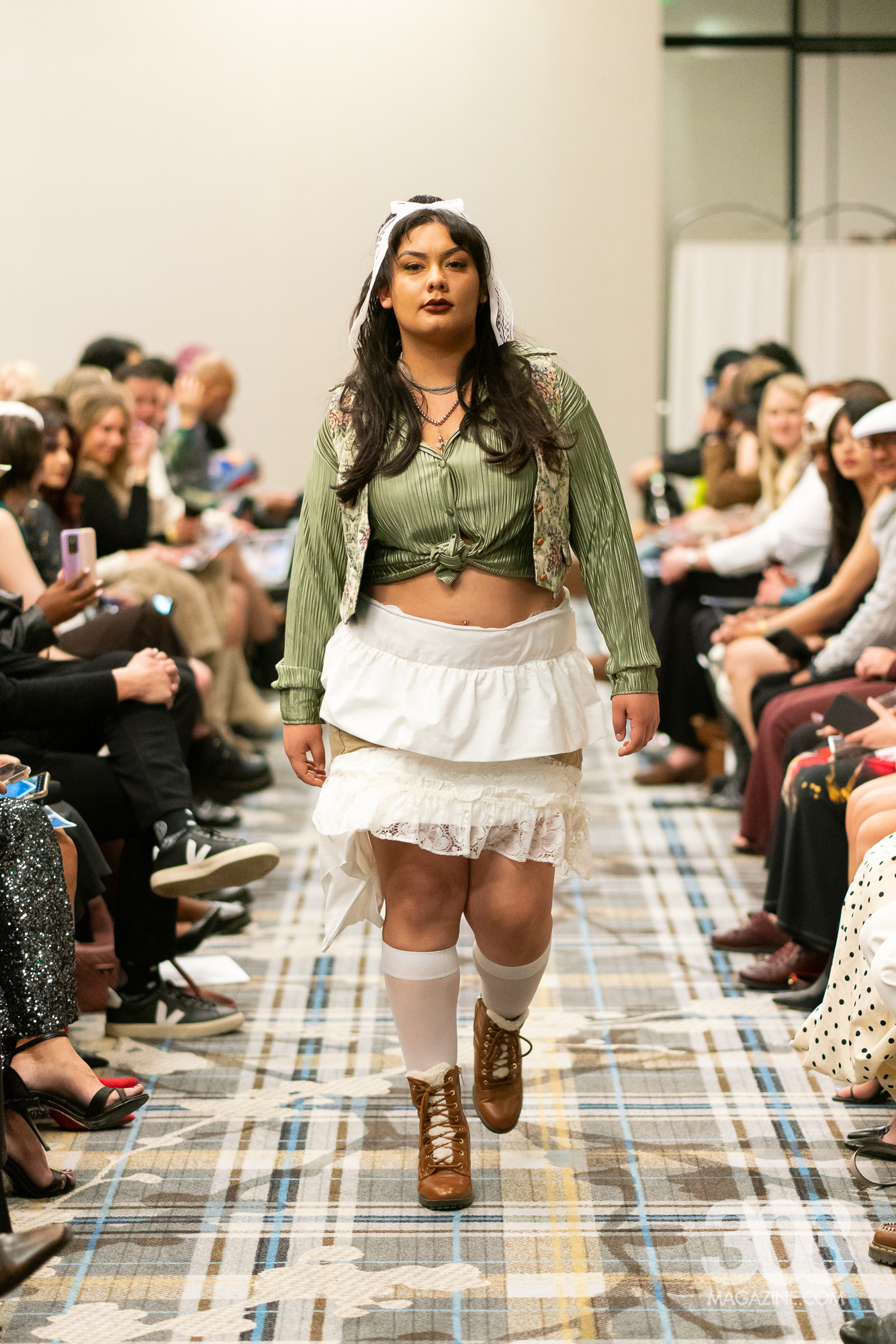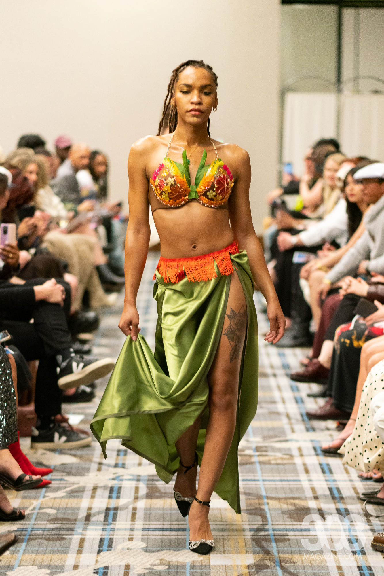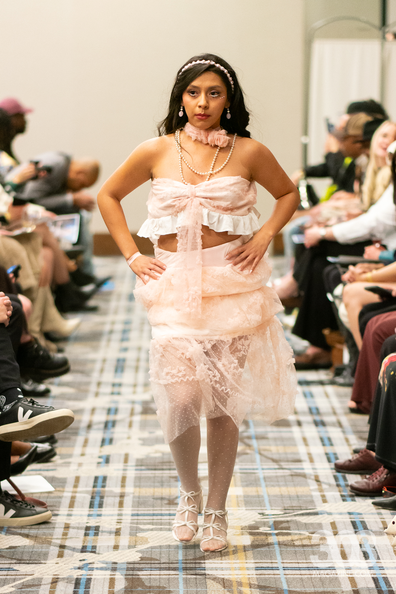 Growing Through It aka Evaliza Arredondo created a sustainable and maximalist collection that was thoughtful and intentional. Her models strutted down the runway in unique pieces that captivated the judges and audience, making for an unexpected and unconventional display.