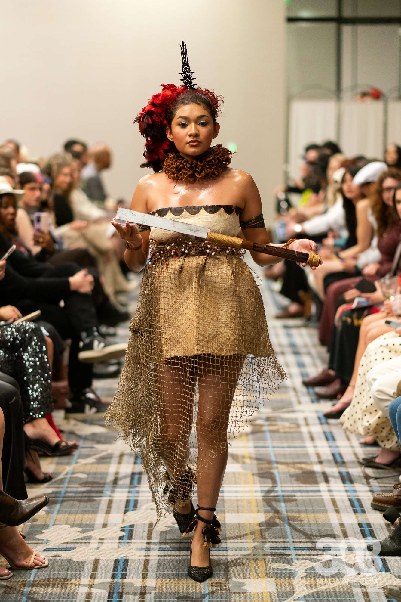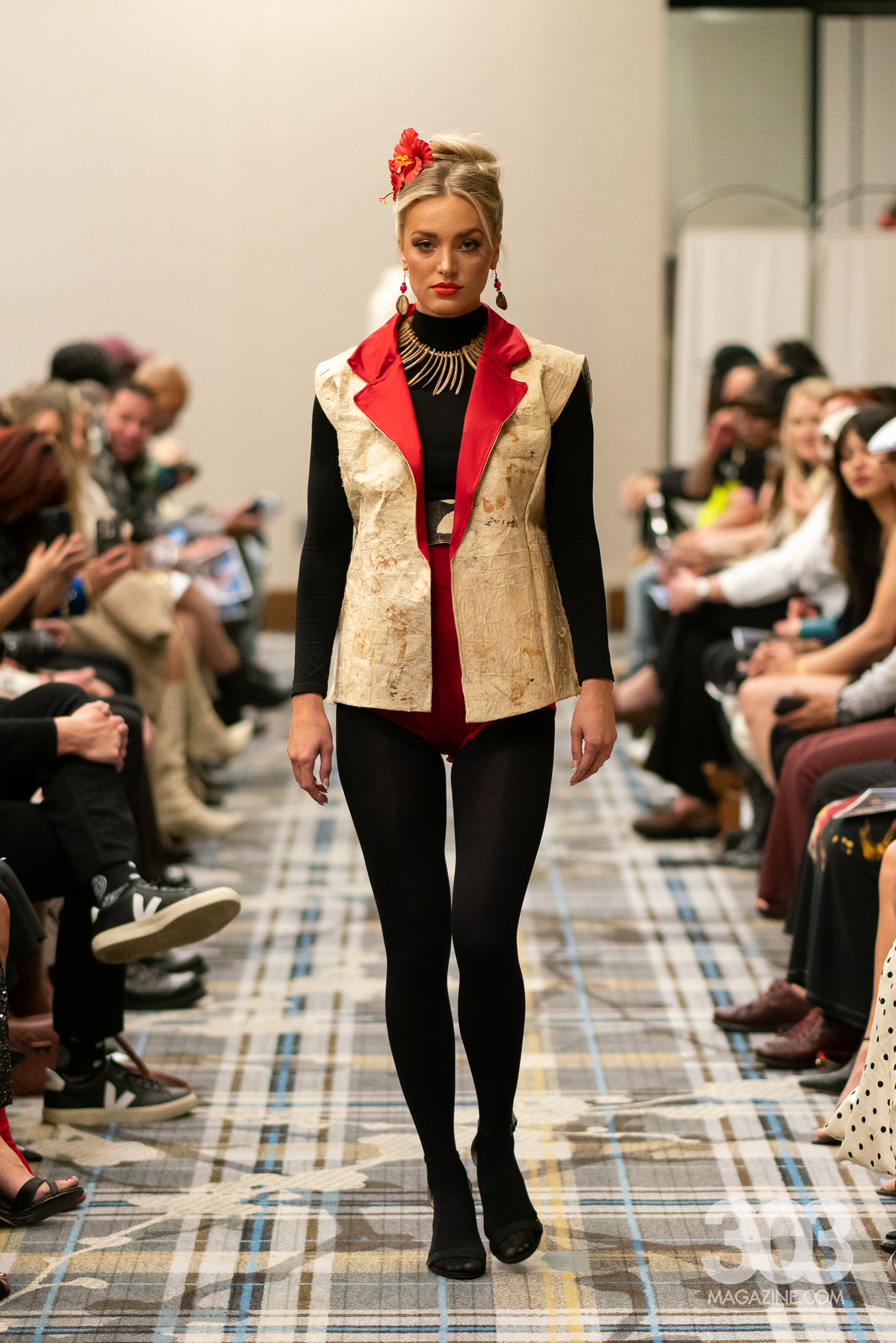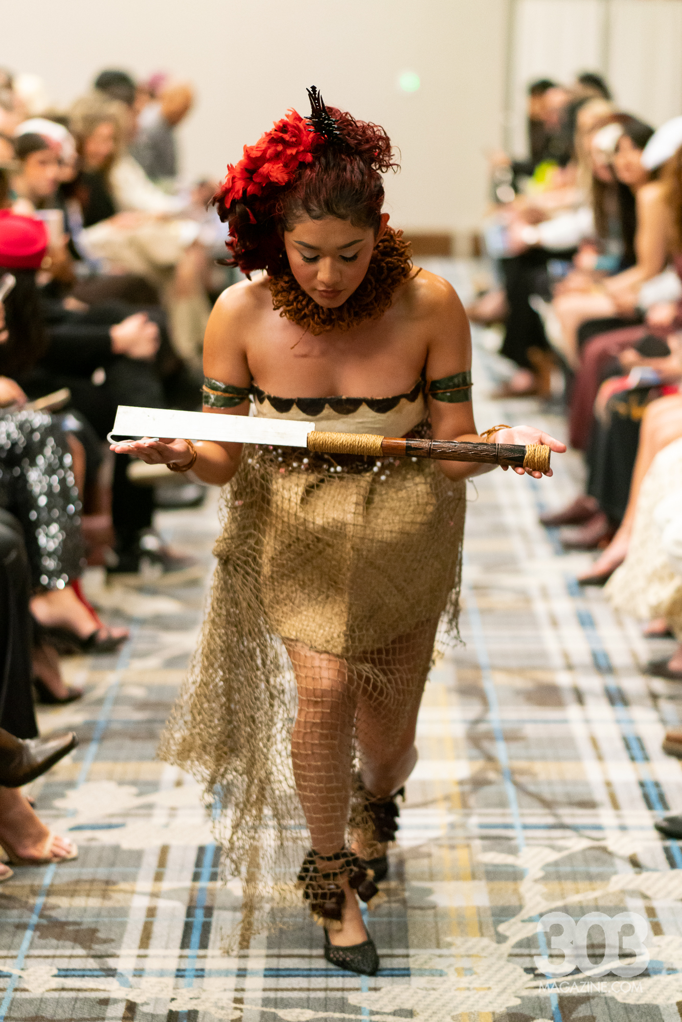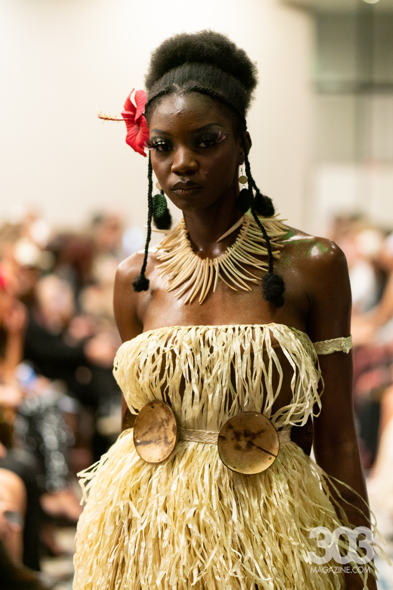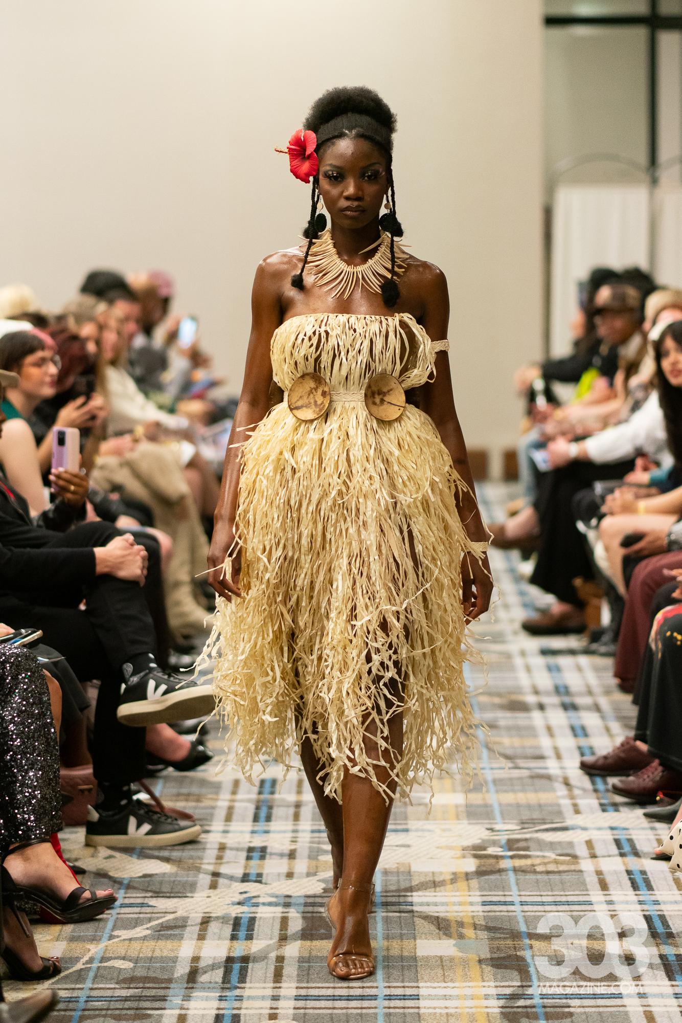 Timeless Trends aka Katherine Peko-Mavaega had her models strut down the runway in her classic pieces inspired by her Pacific Island roots. The collection was made up largely of earth tones with tasteful pops of red, including traditional Pacific Island accessories against modern silhouettes. The judges noted that they “haven’t seen something like this done before at Denver Fashion Week” which certainly swayed their vote.