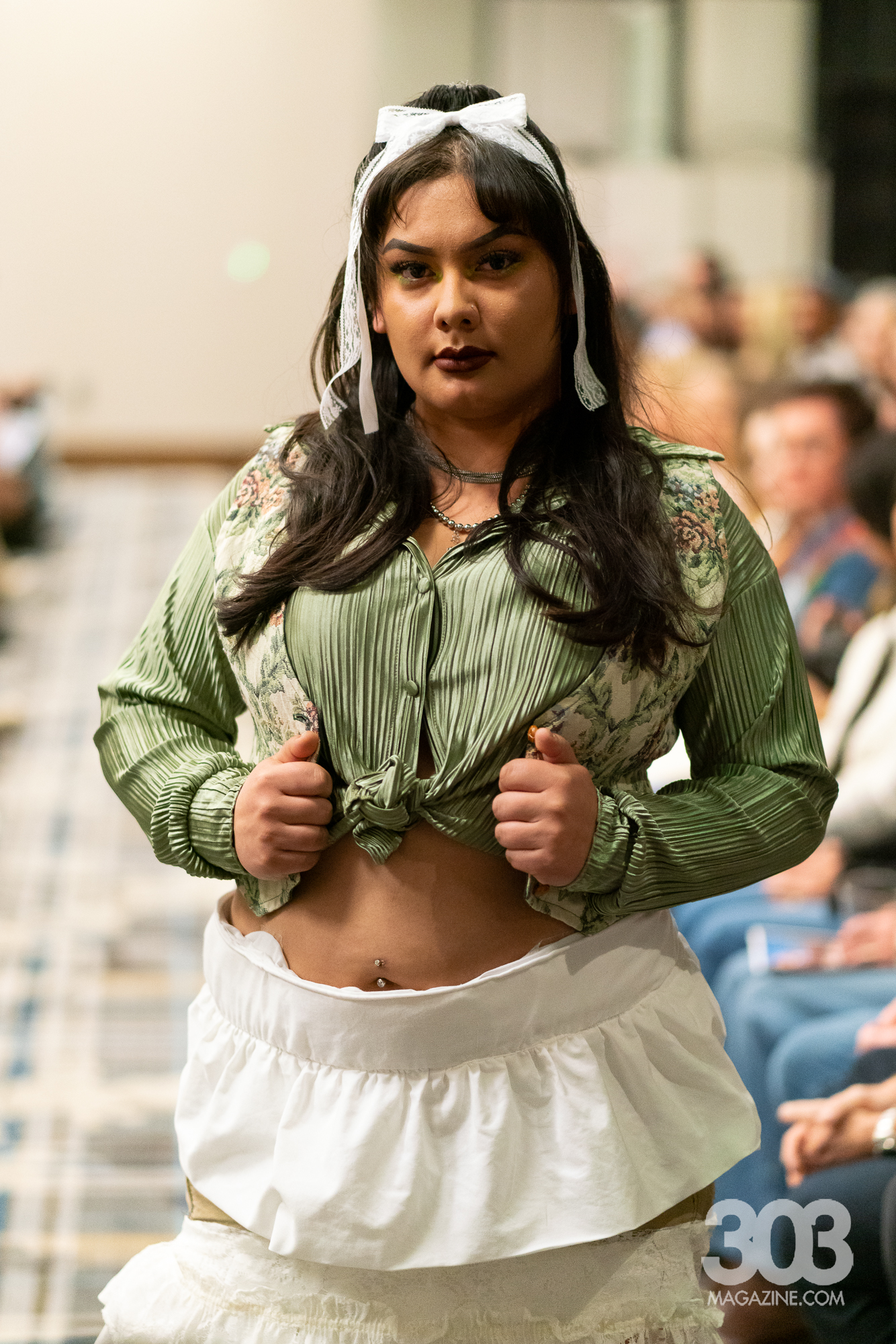 This year’s designers included Timeless Trend by Ameliah TeneMake You SparkleCAKEBRAIN, Growing Through ItMedicine Mender, and Nohealanii. Each showed five looks that highlighted their own unique feature to hopefully assist them in moving on to Denver Fashion Week.