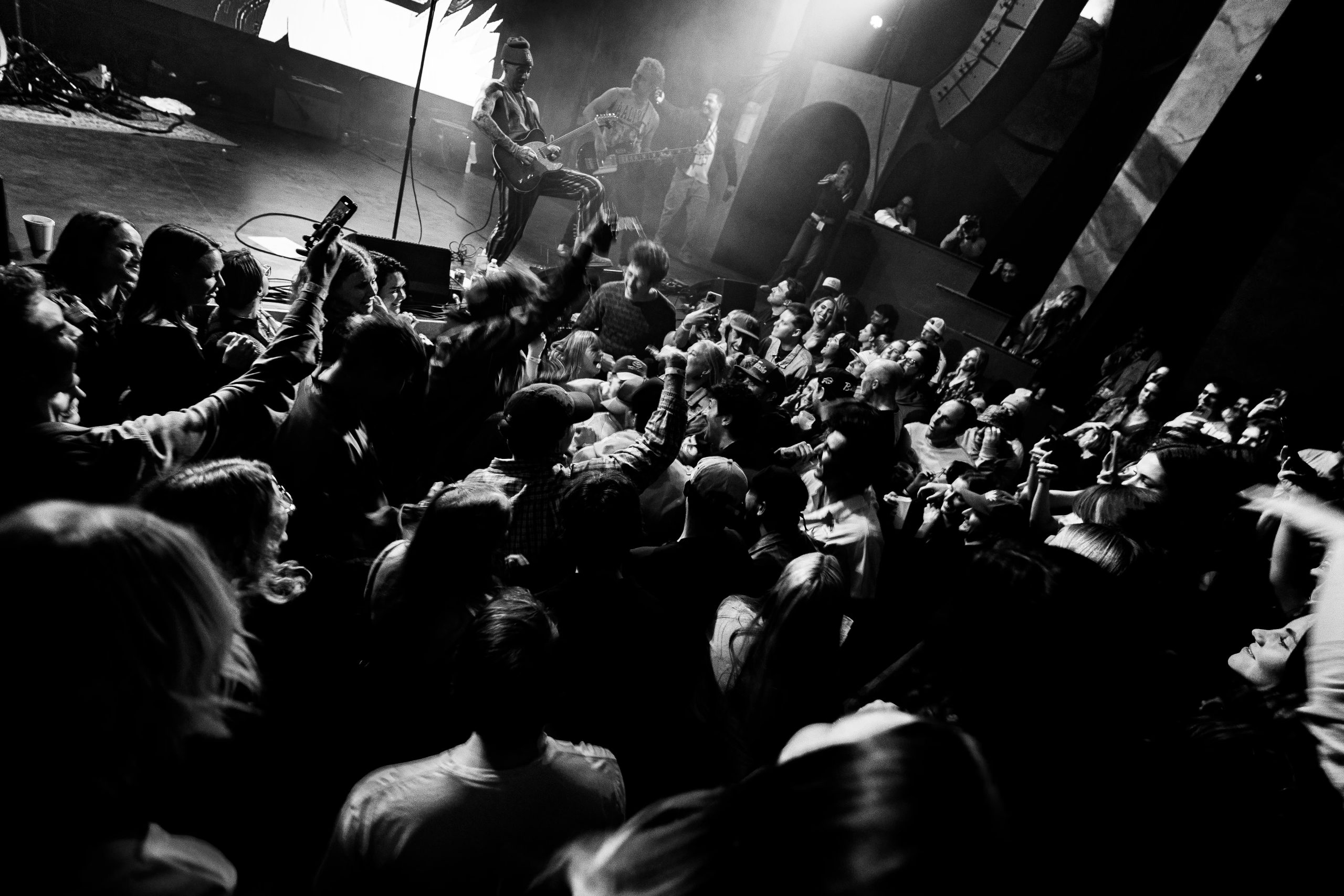 When the stage cleared, and as the lights dimmed, the energy inside the Bluebird filled with anticipation. The pit in front of the stage was more crowded than ever as hints of the Evening Elephants began to pour out. Once Boggs and Leslie finally made their way to the stage, the crowd erupted into a cheer not just of excitement, but of reunification, as if they had met with loved ones they had not seen in years. Boggs was adorned in a shirt that, of course, said “Who Pissed My Pants” whilst cracking open his first can of beer. As he did this, he commented to the audience on his shirt, immediately showcasing his laid-back, yet relatable persona that his audience knows him for. He commented on the current state of the world and how it is a “pretty shitty place right now.”