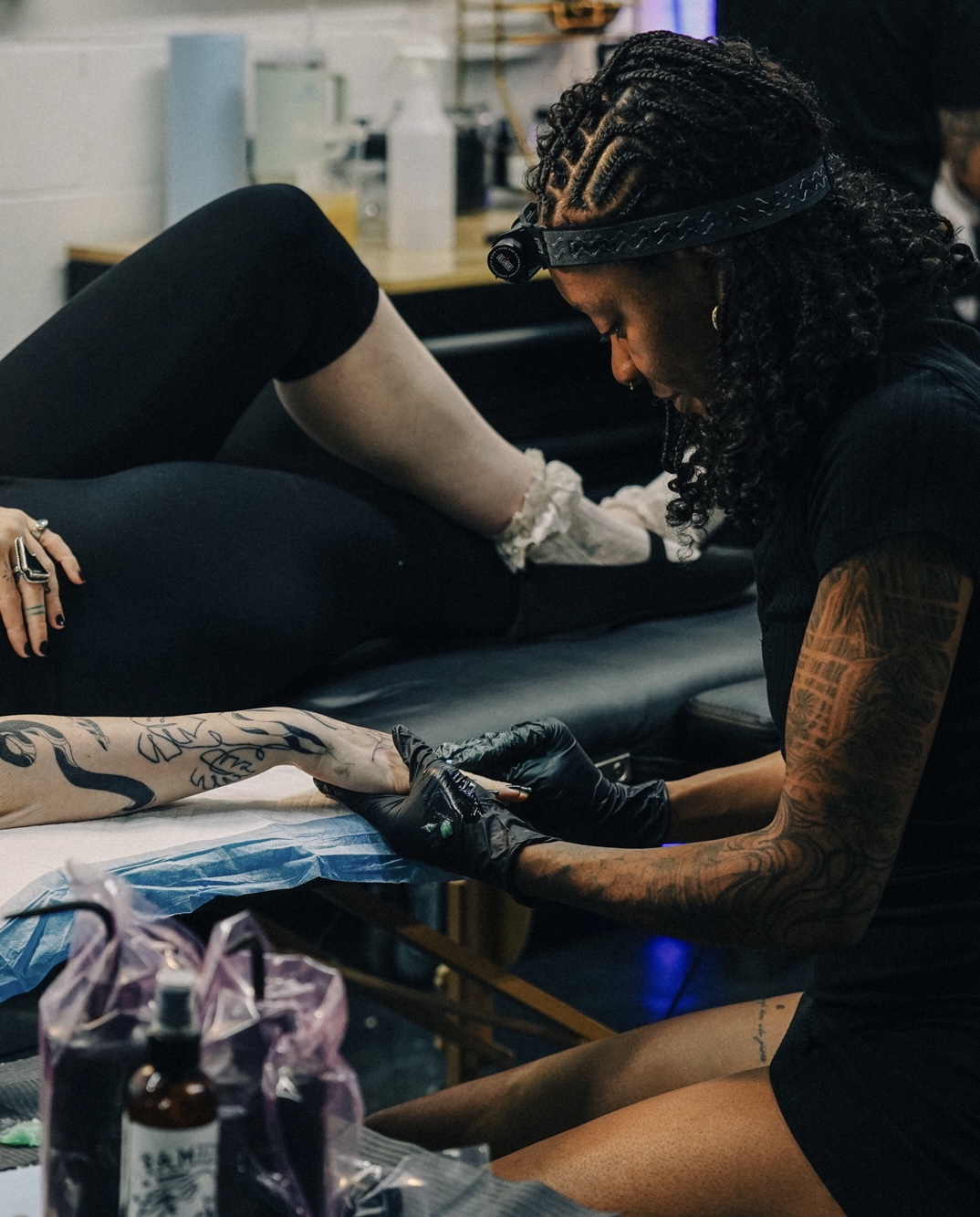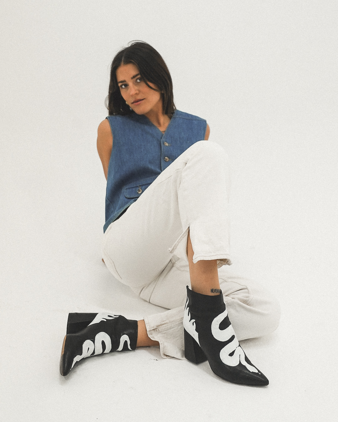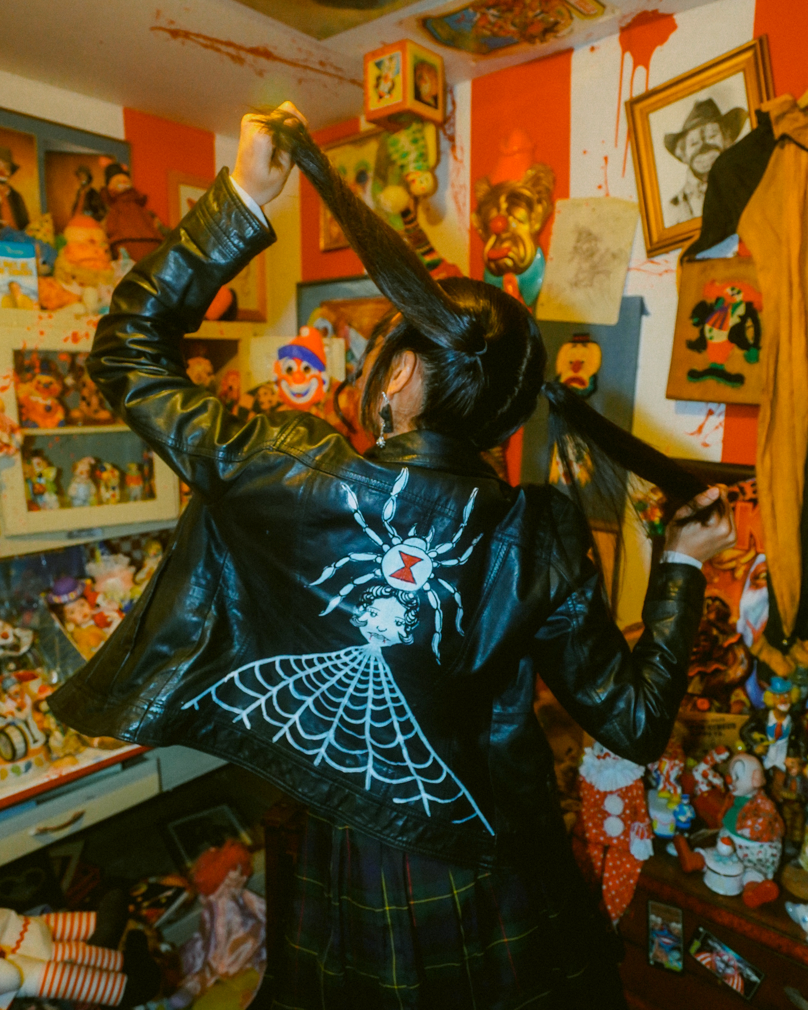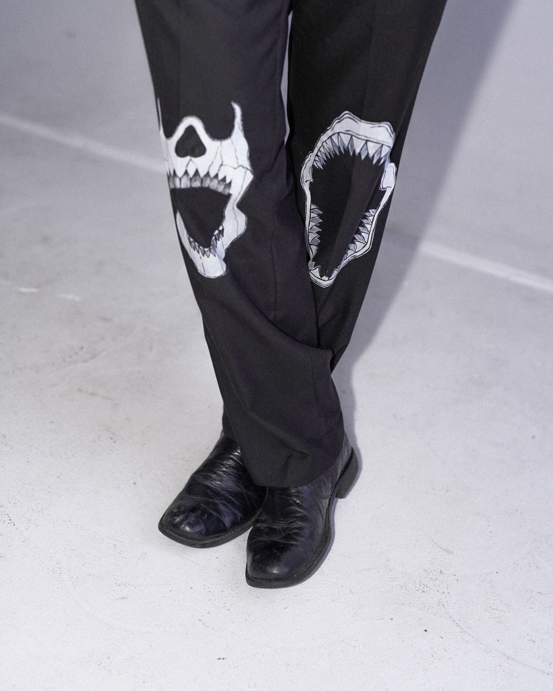 Once the garments were sourced (all secondhand) she approached each item as a canvas, painting bold tattoo-inspired designs that embodied the spirit of rebellion and self expression.