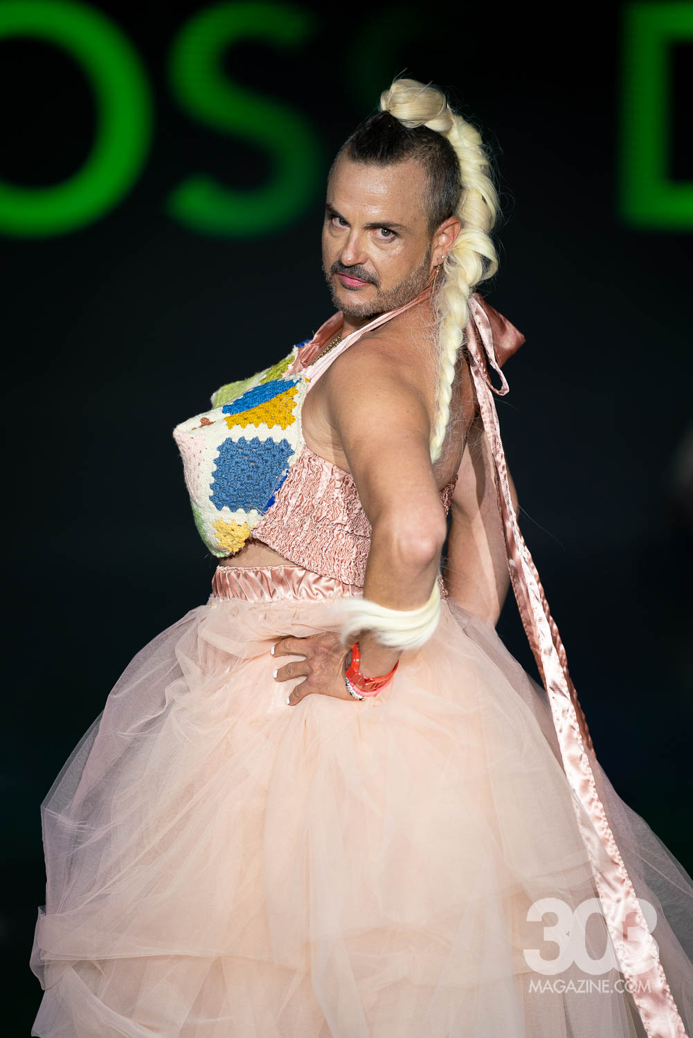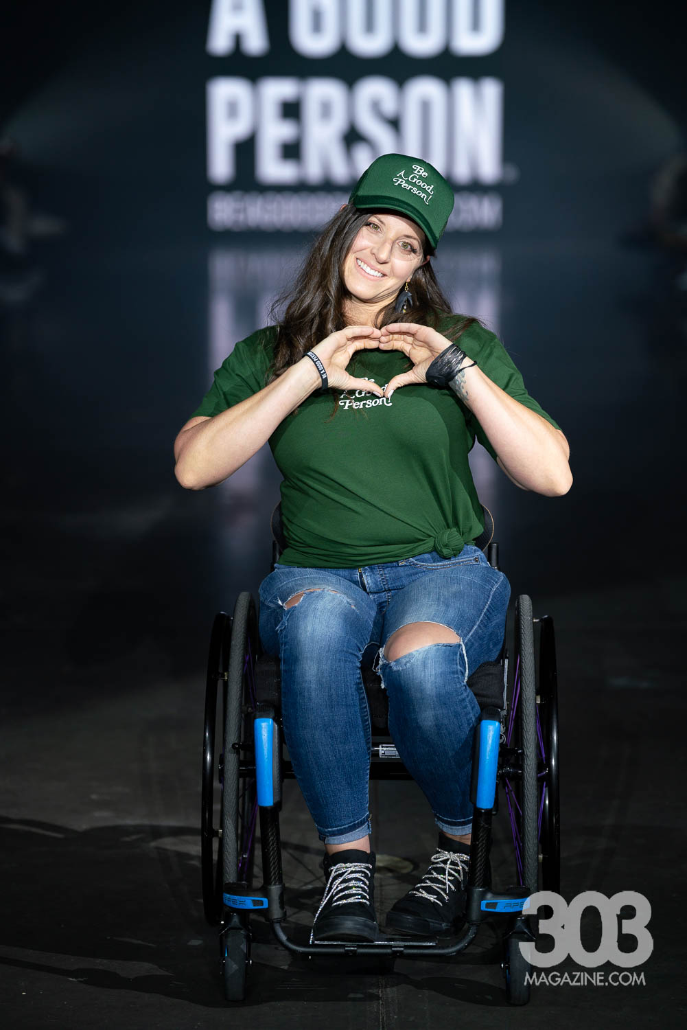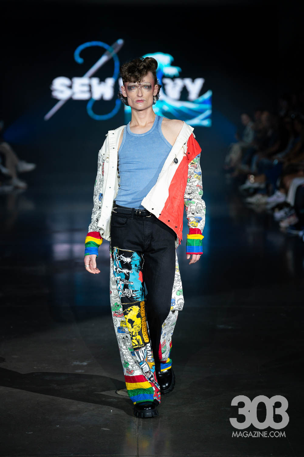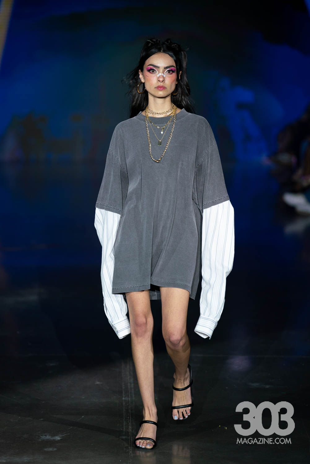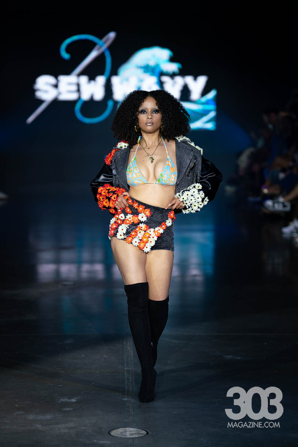 Flash + Rose’s runway look “For The Grrrls,” radiated pure tough-girl energy, turning the catwalk into a battleground of bold confidence and fearless fashion. The first model was a co-founder of Girls Skate Denver, an organization that empowers girls and builds confidence through skating. She skated down the runway to open the collection, setting a gritty energy for the rest of Flash + Rose’s segment.