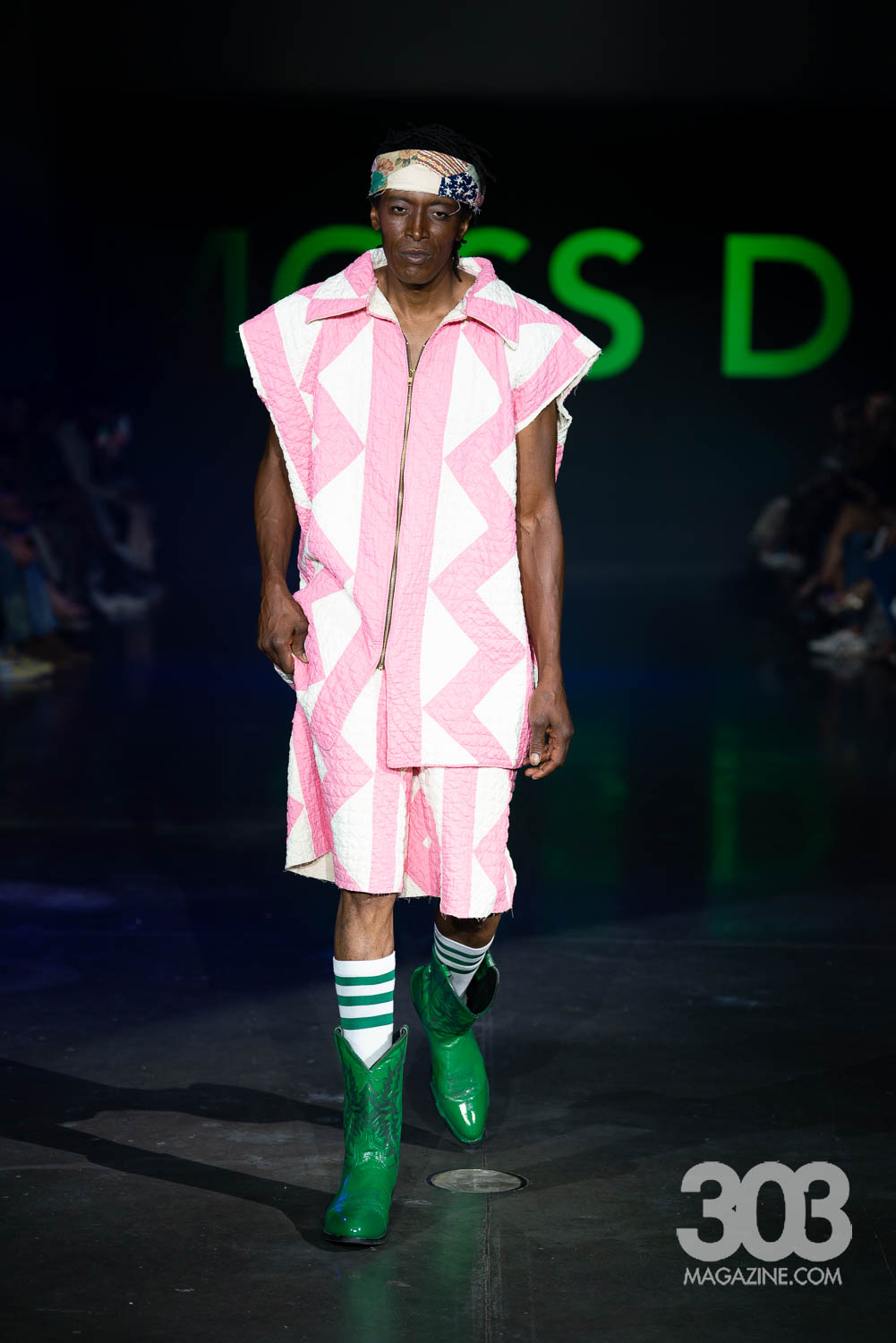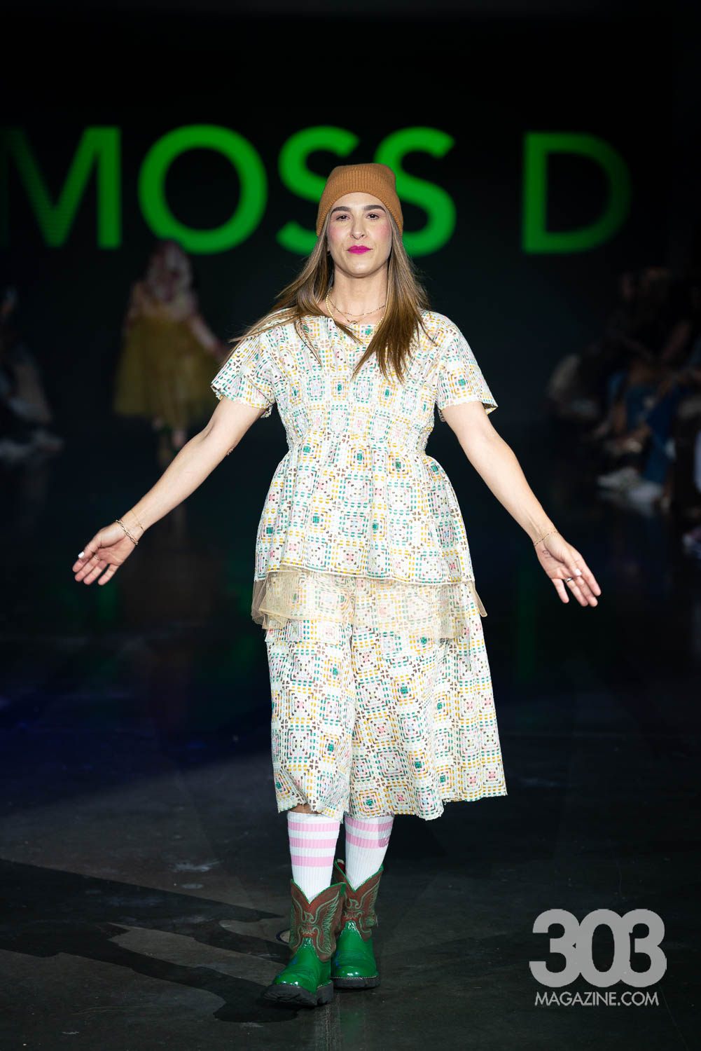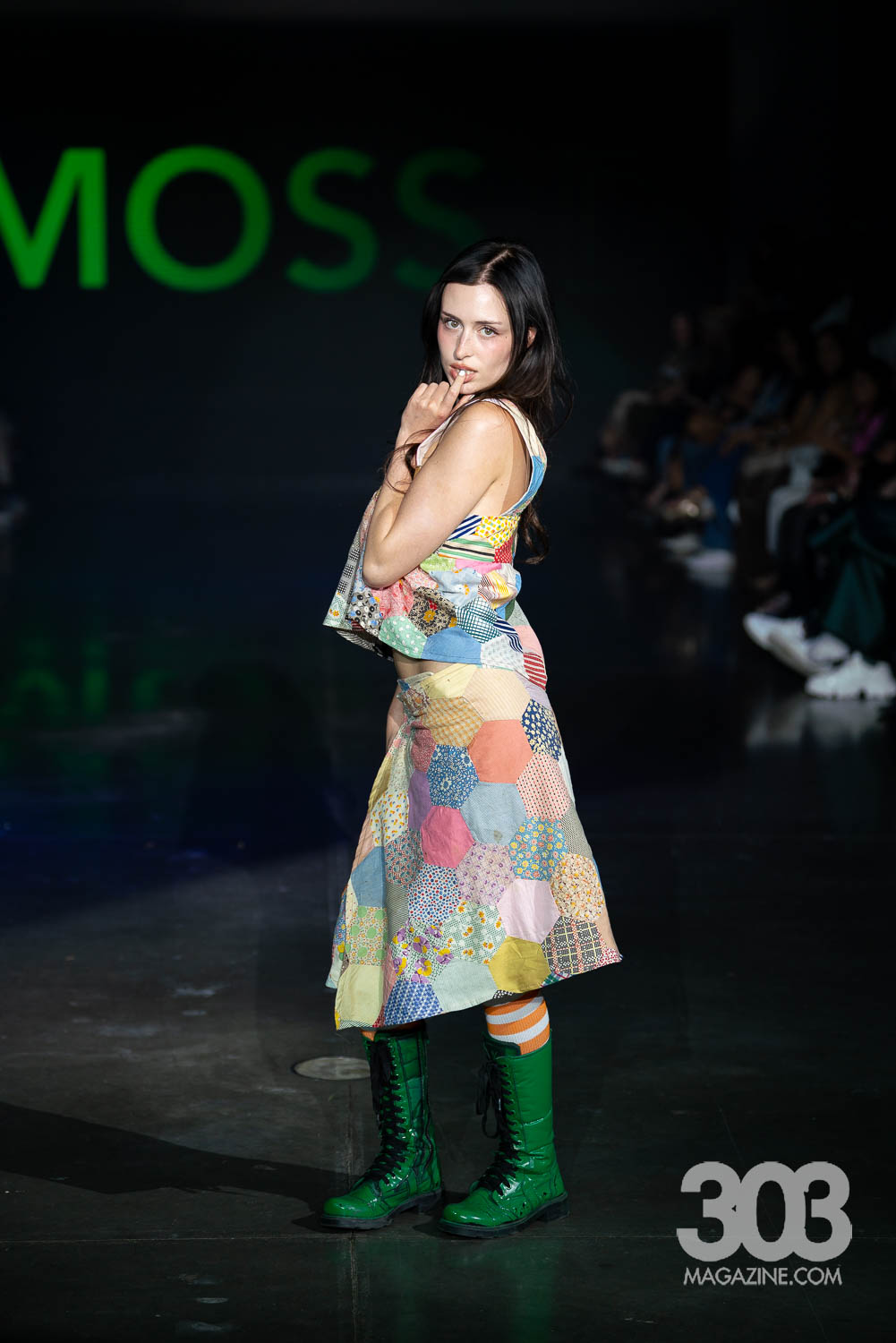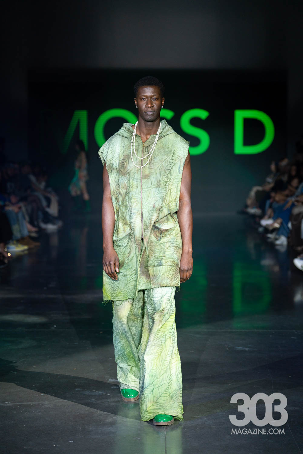 MOSS D’s collection lit up the runway with vibrant color and joyful energy, offering a refreshing burst of playfulness. Each look was a thoughtfully crafted matching set, with dresses that radiated intention, care and a clear sense of love woven into every stitch. The models brought the collection to life with high energy, dancing down the runway in bright green boots that added a fun, unifying twist. It was a show that celebrated the power of dressing with joy.