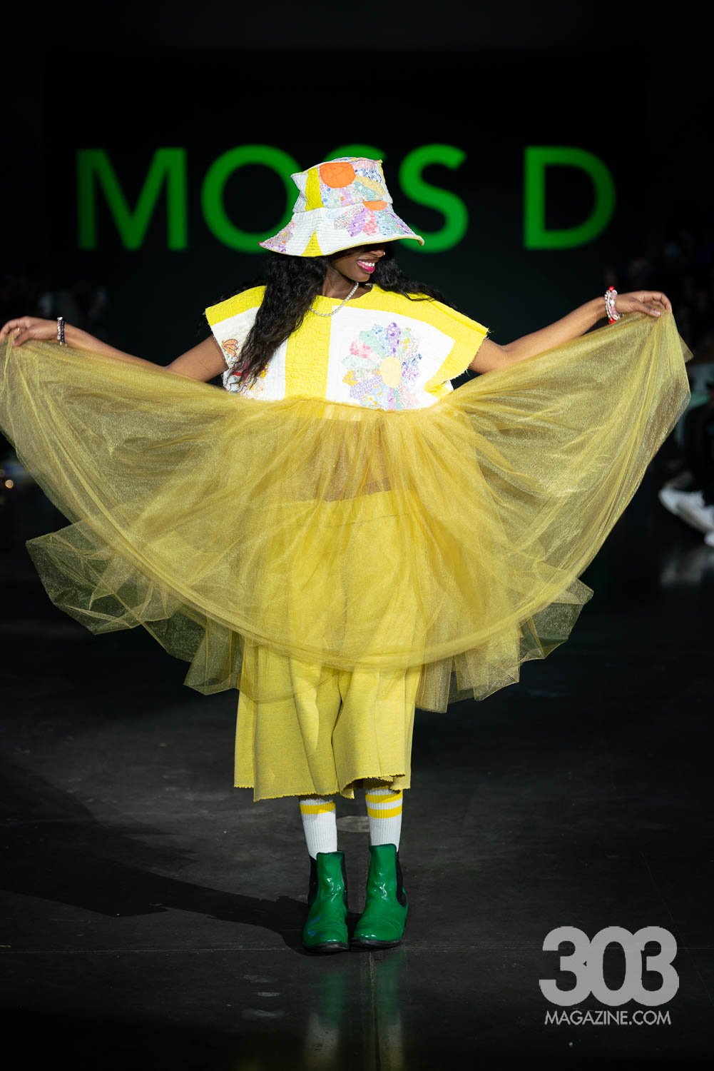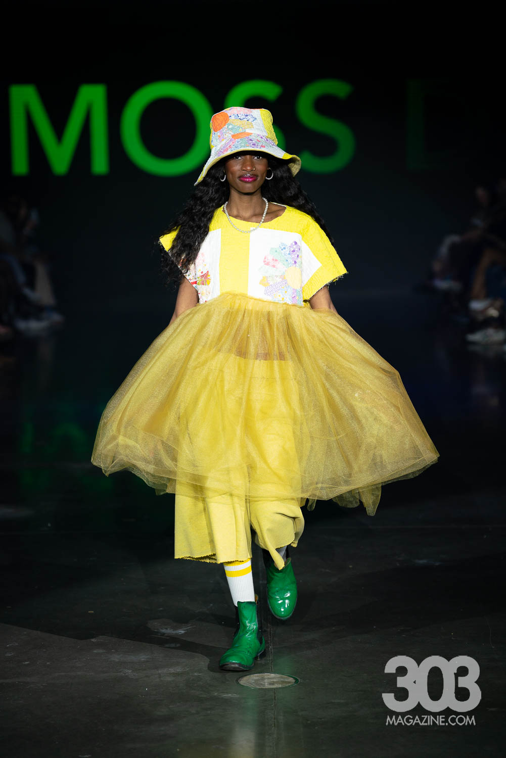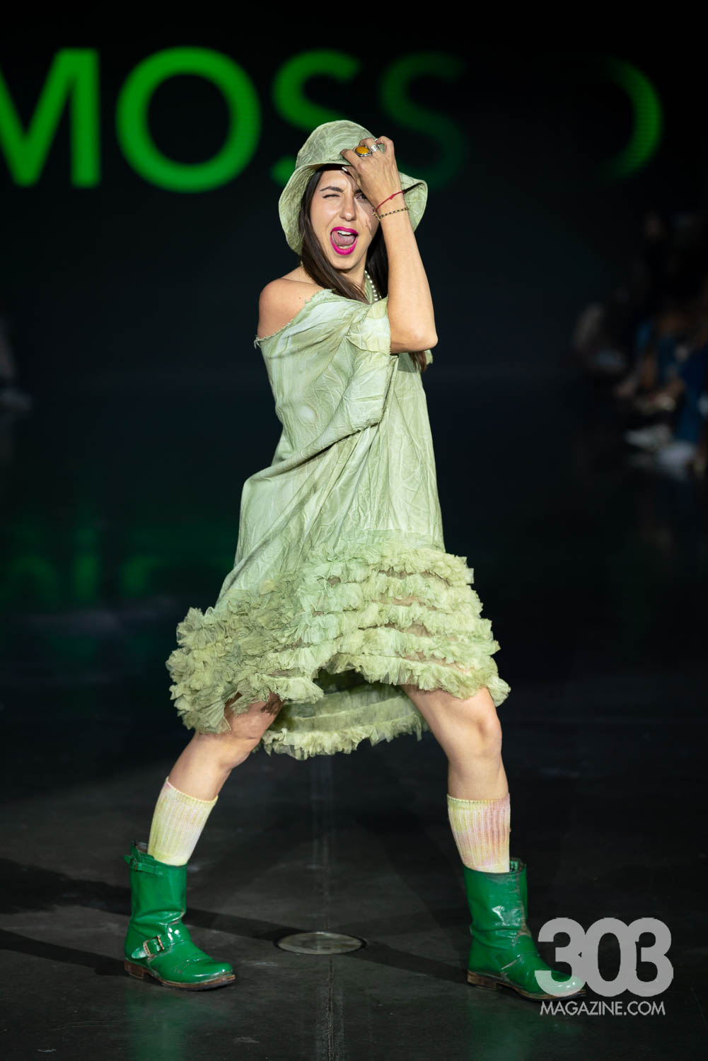 MOSS D’s collection lit up the runway with vibrant color and joyful energy, offering a refreshing burst of playfulness. Each look was a thoughtfully crafted matching set, with dresses that radiated intention, care and a clear sense of love woven into every stitch. The models brought the collection to life with high energy, dancing down the runway in bright green boots that added a fun, unifying twist. It was a show that celebrated the power of dressing with joy.