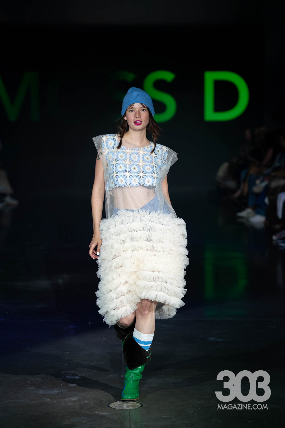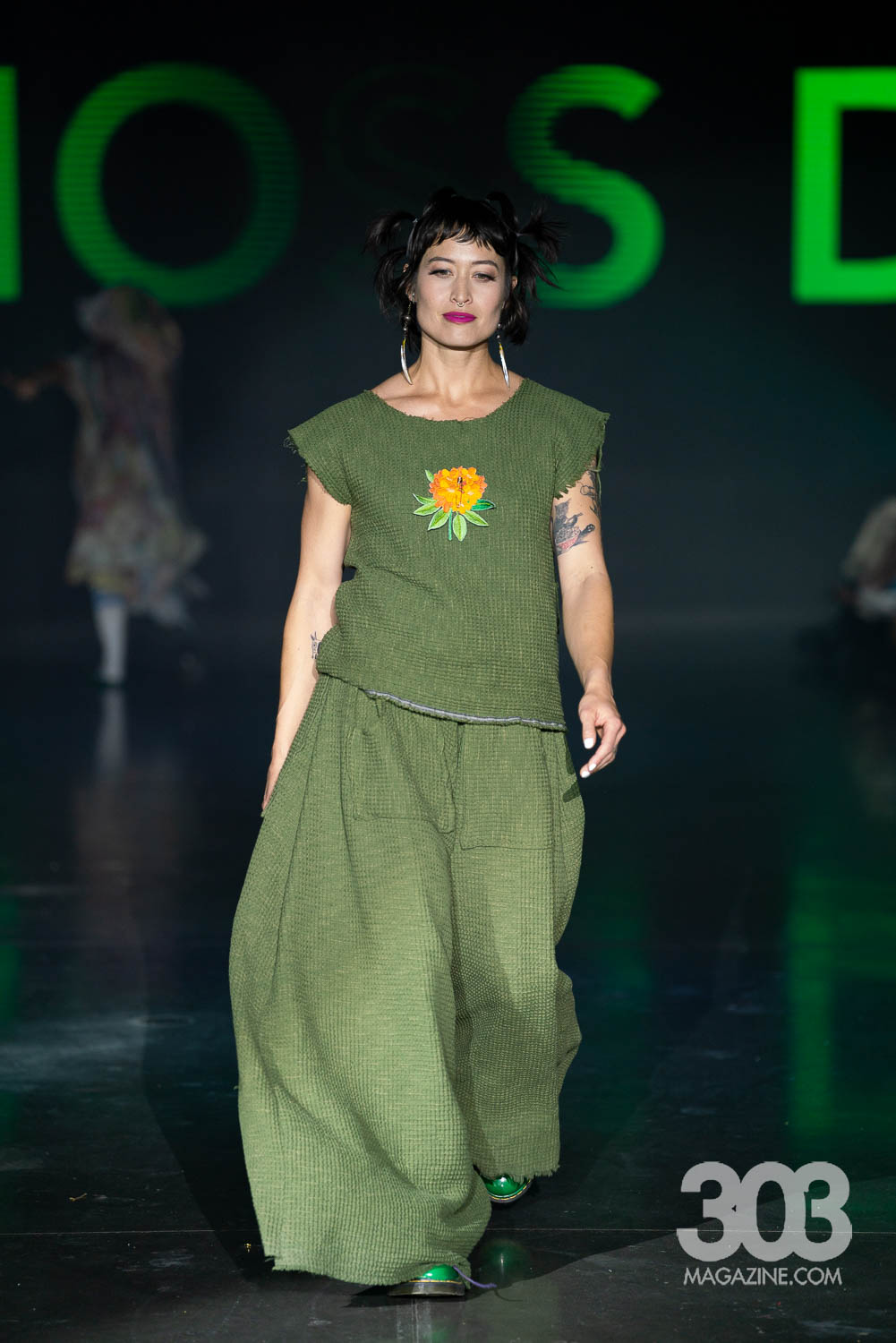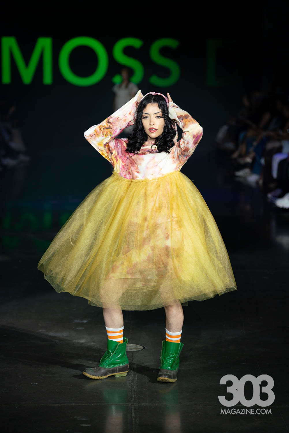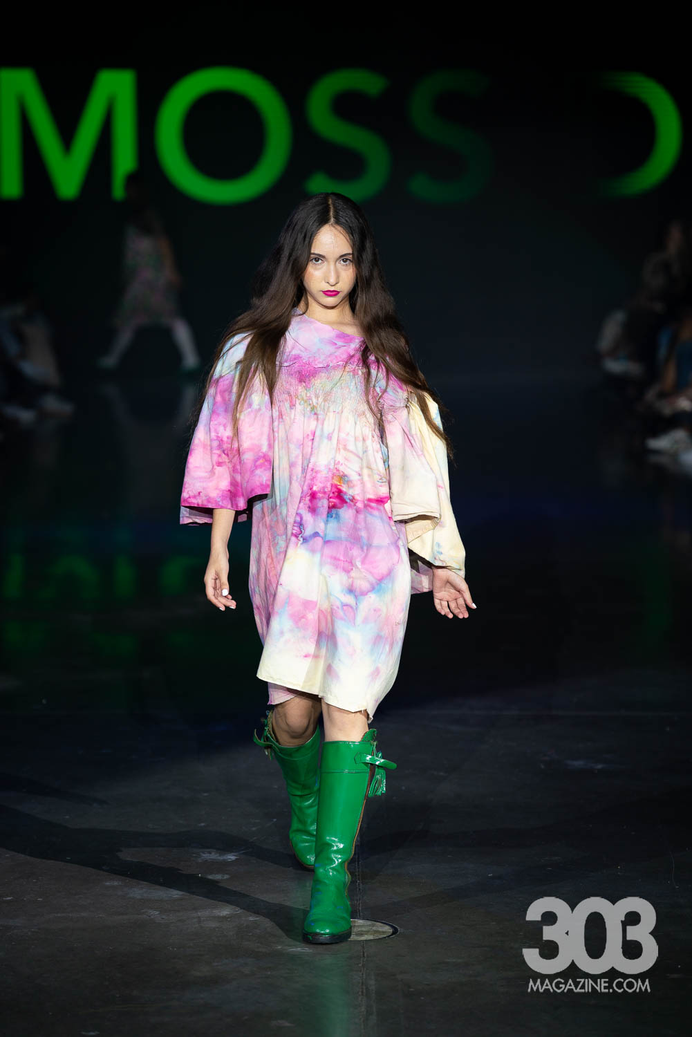 MOSS D’s collection lit up the runway with vibrant color and joyful energy, offering a refreshing burst of playfulness. Each look was a thoughtfully crafted matching set, with dresses that radiated intention, care and a clear sense of love woven into every stitch. The models brought the collection to life with high energy, dancing down the runway in bright green boots that added a fun, unifying twist. It was a show that celebrated the power of dressing with joy.