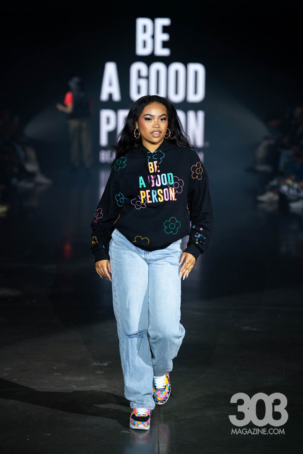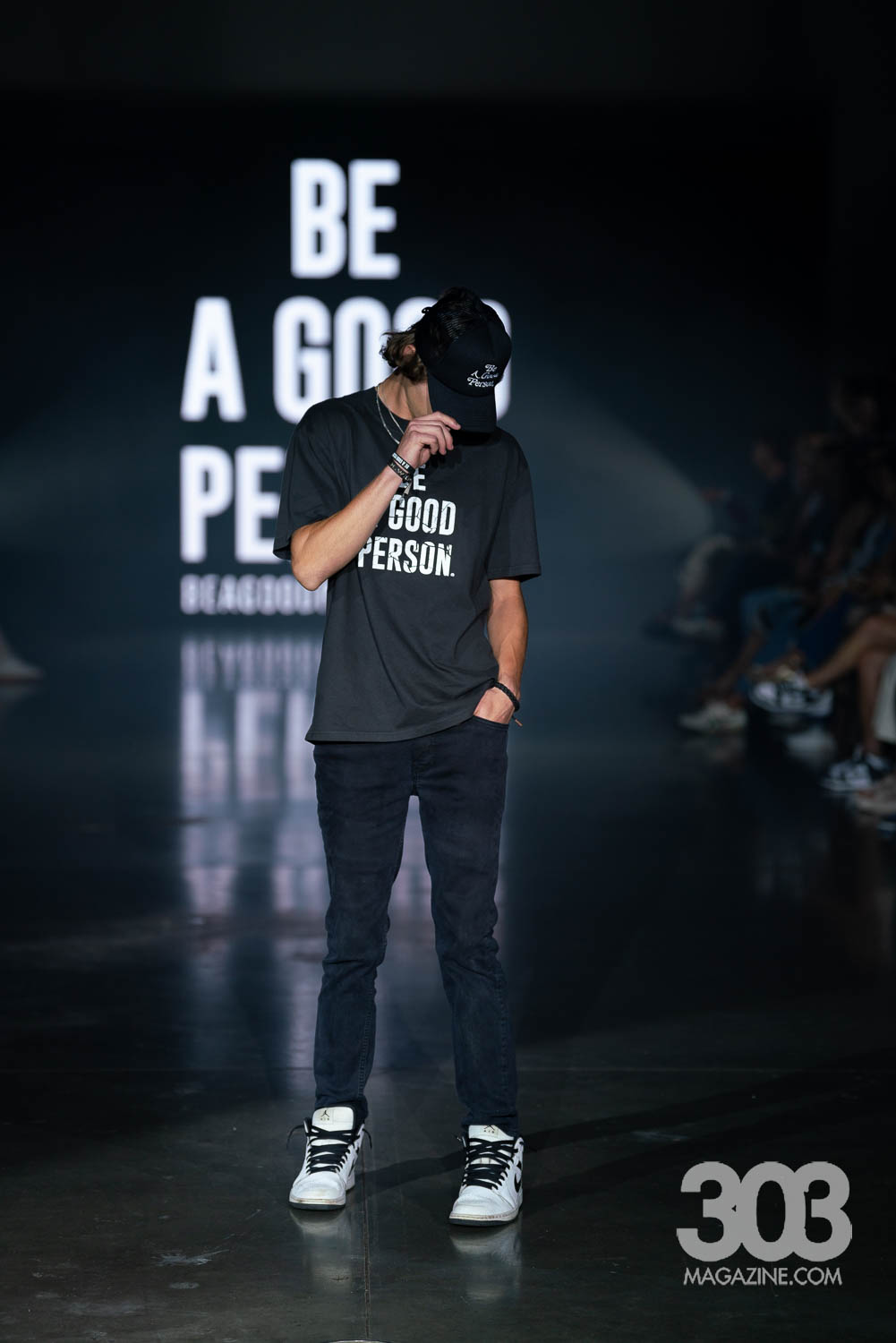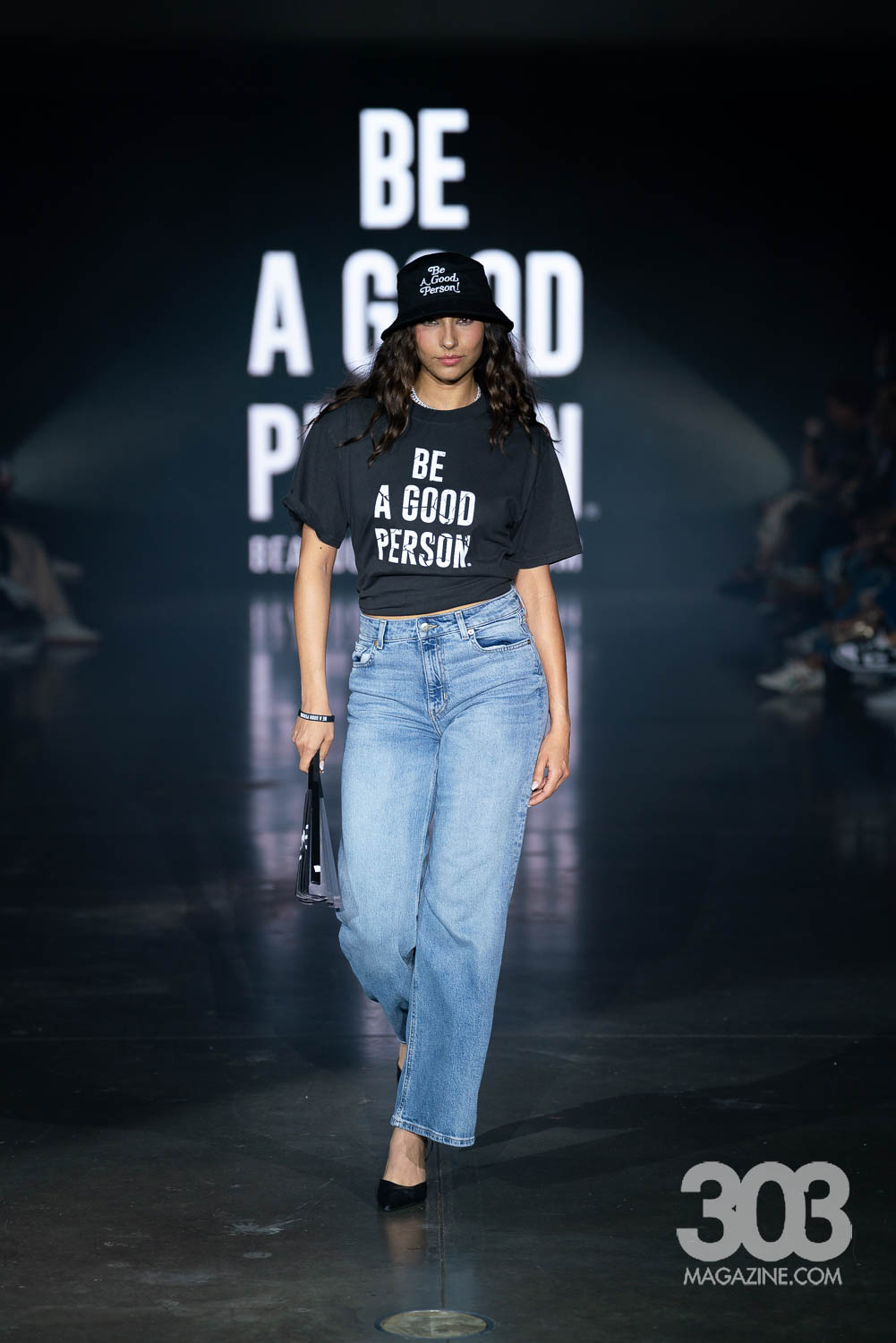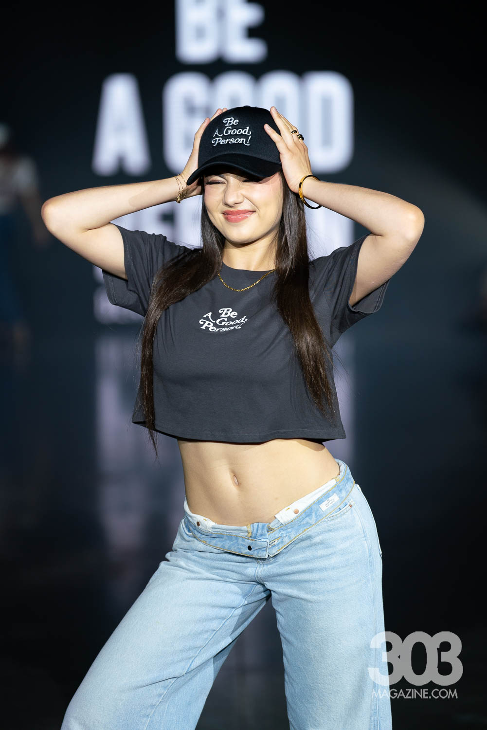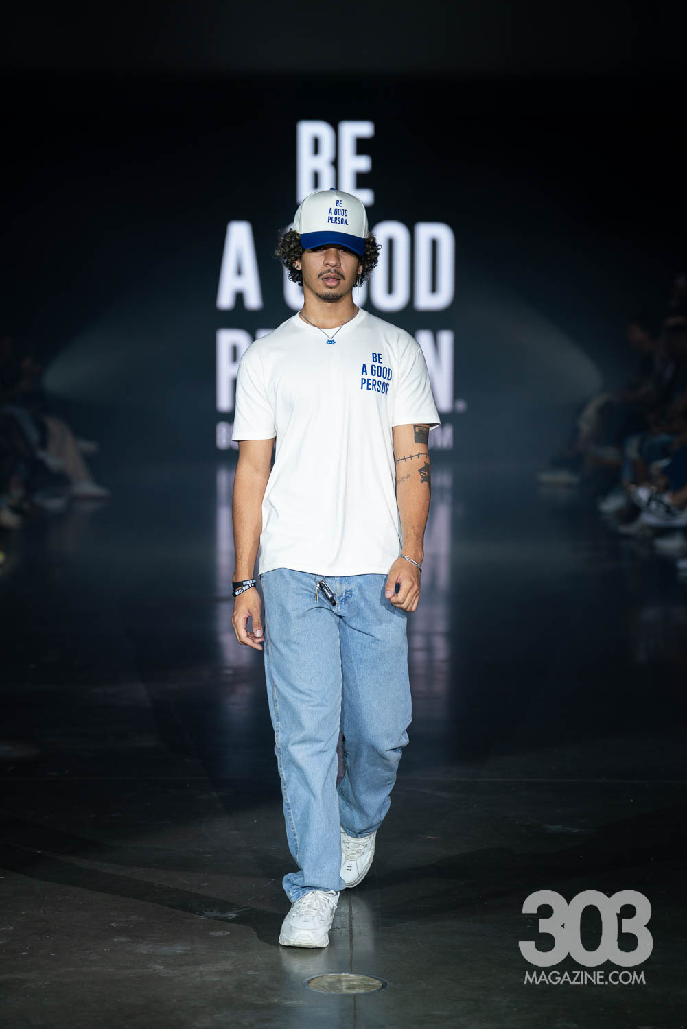 BE A GOOD PERSON brought a classic collection was a vibrant celebration of their iconic tees and hats, brought to life by a lineup of fun, energetic models who radiated positivity with every step. Each look paired the brand’s signature pieces with effortlessly cool denim and a bold pair of heels or sneakers, striking the perfect balance between casual streetwear and elevated style. The collection stayed true to the brand’s uplifting message while reminding the audience that timeless staples can still turn heads when styled with attitude and joy.