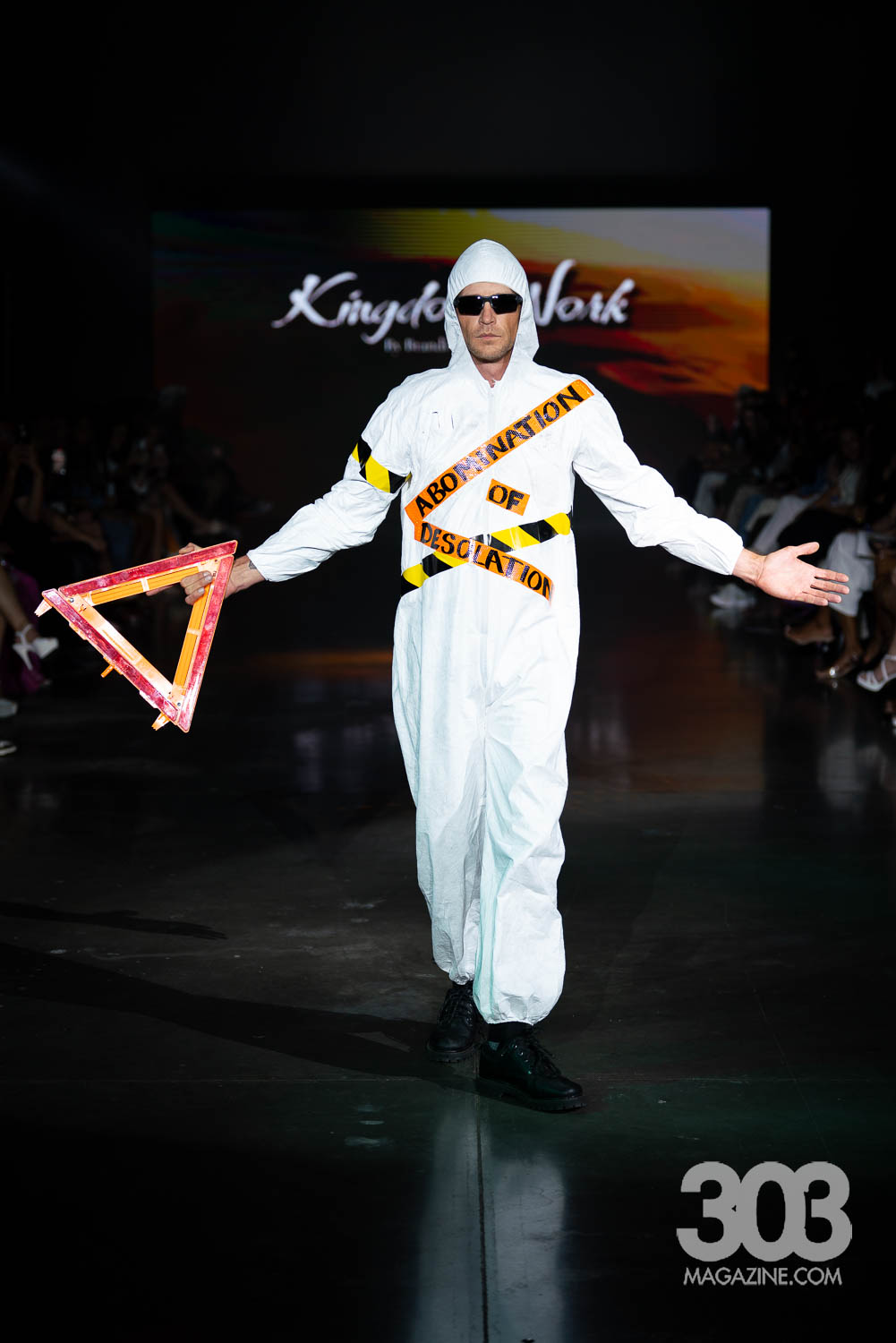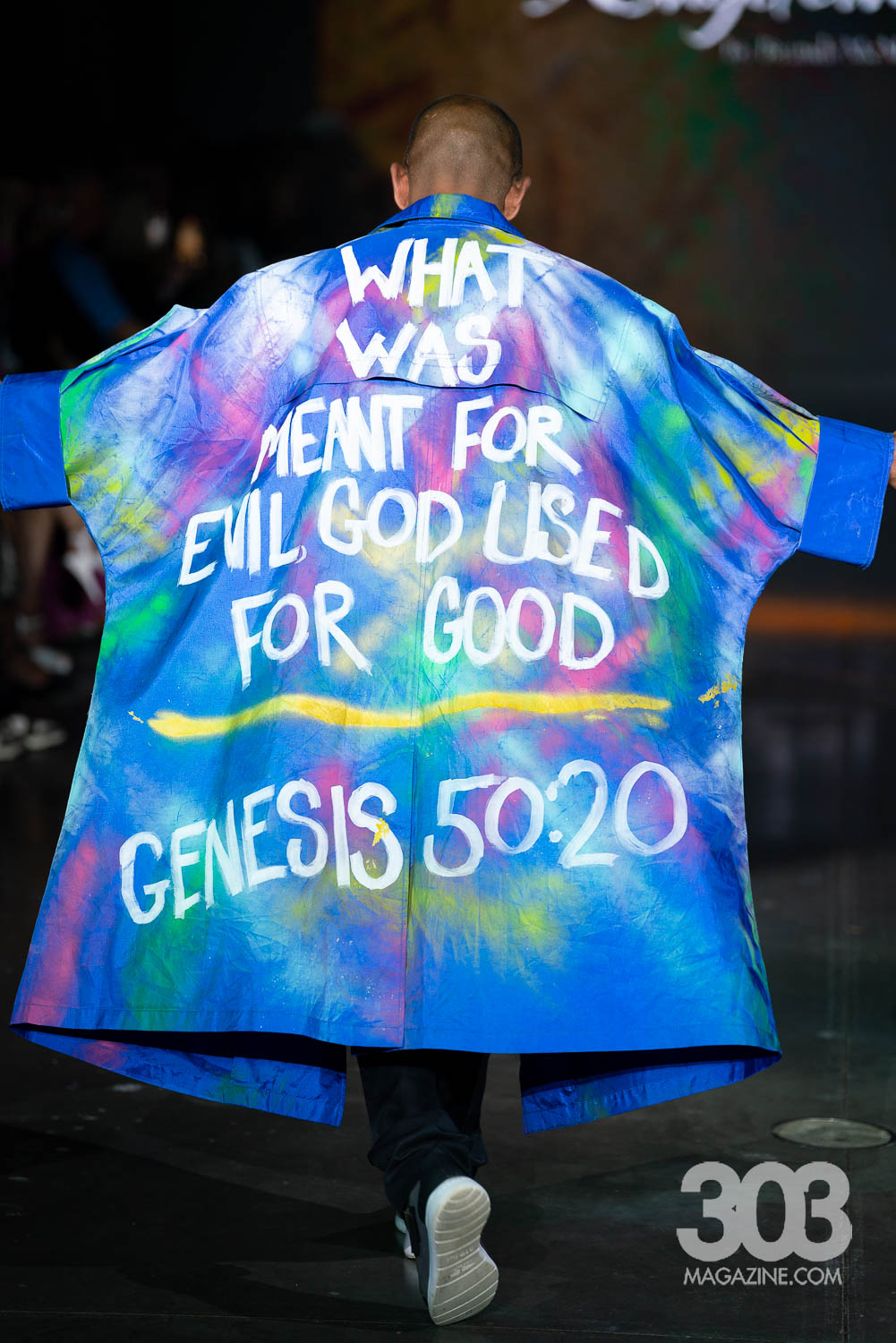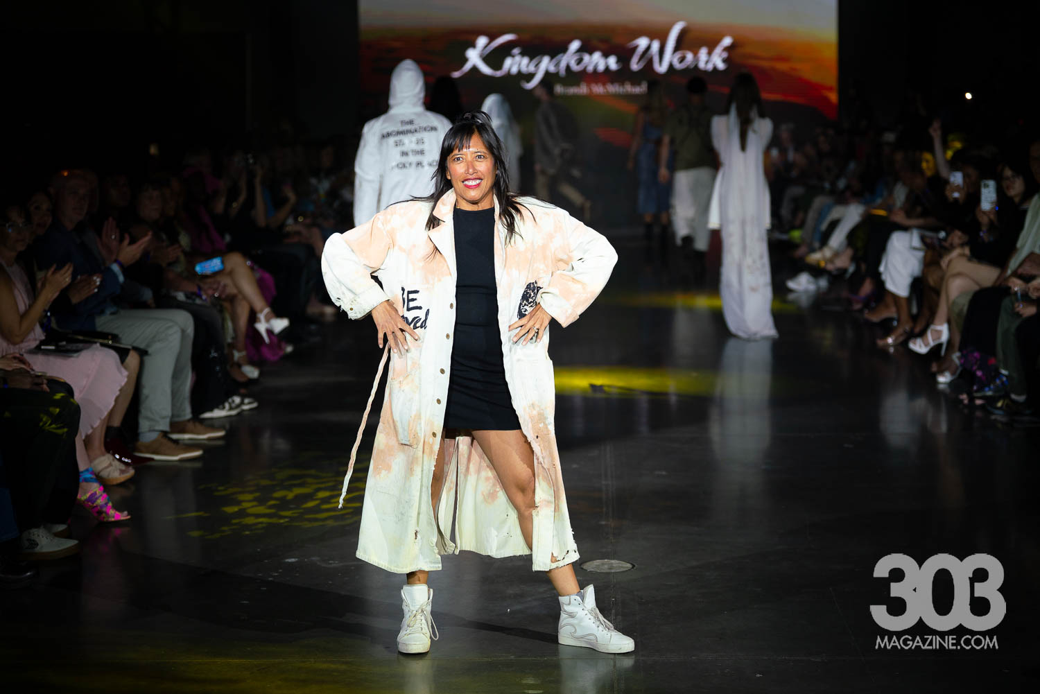 Brandi McMichel brought a powerful and thought-provoking presence to the runway with a collection titled “Kingdom’s Work.” Each meticulously constructed look carried a distinct biblical theme, with garments boldly featuring messages like the verse Genesis 50:20 and the declaration, “March on, my soul; be strong.” The show made a striking impact as a pair of twins split the runway in perfectly matched ensembles, reinforcing the brand’s message of unity and strength. The final model stepped out in a stark white jumpsuit with “Abomination of Desolation” on the front, and “The abomination stands in the holy place” on the back, leaving the audience with a powerful visual statement that lingered long after the lights dimmed.