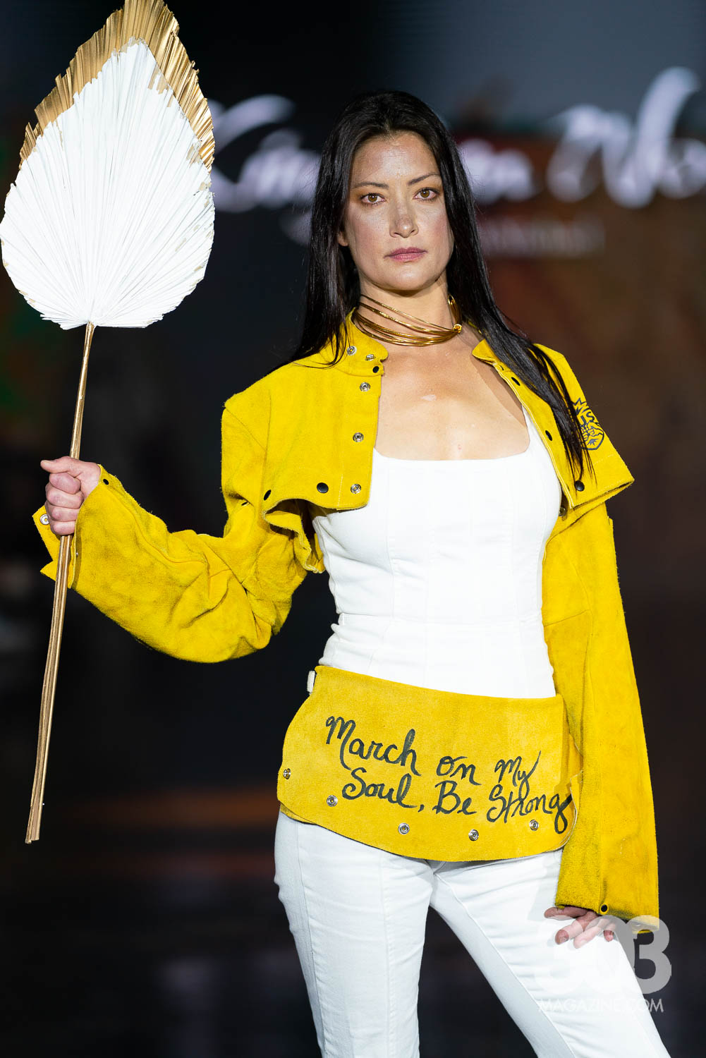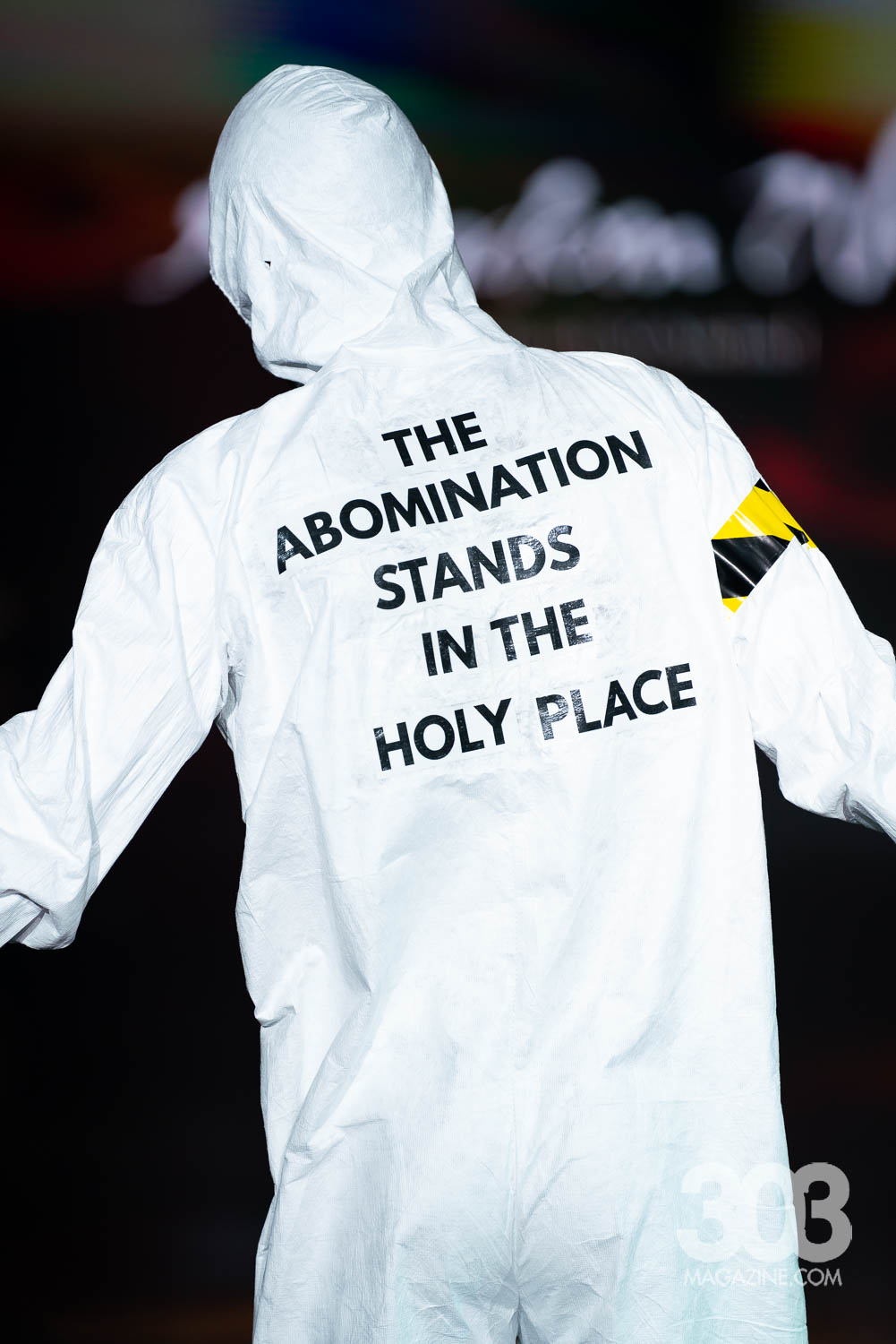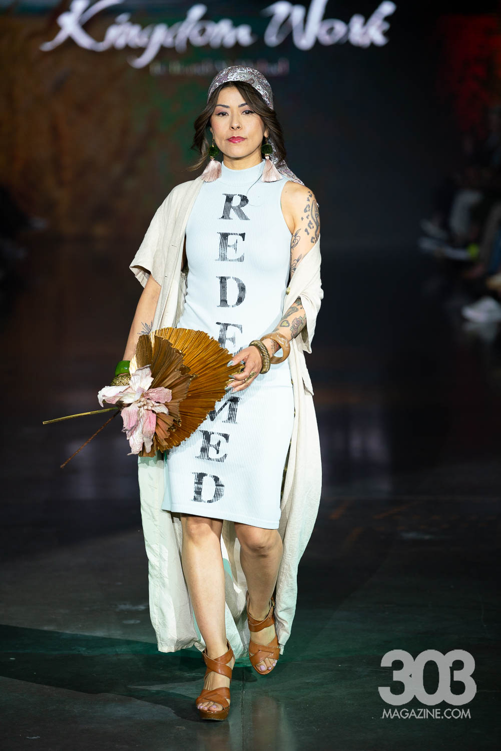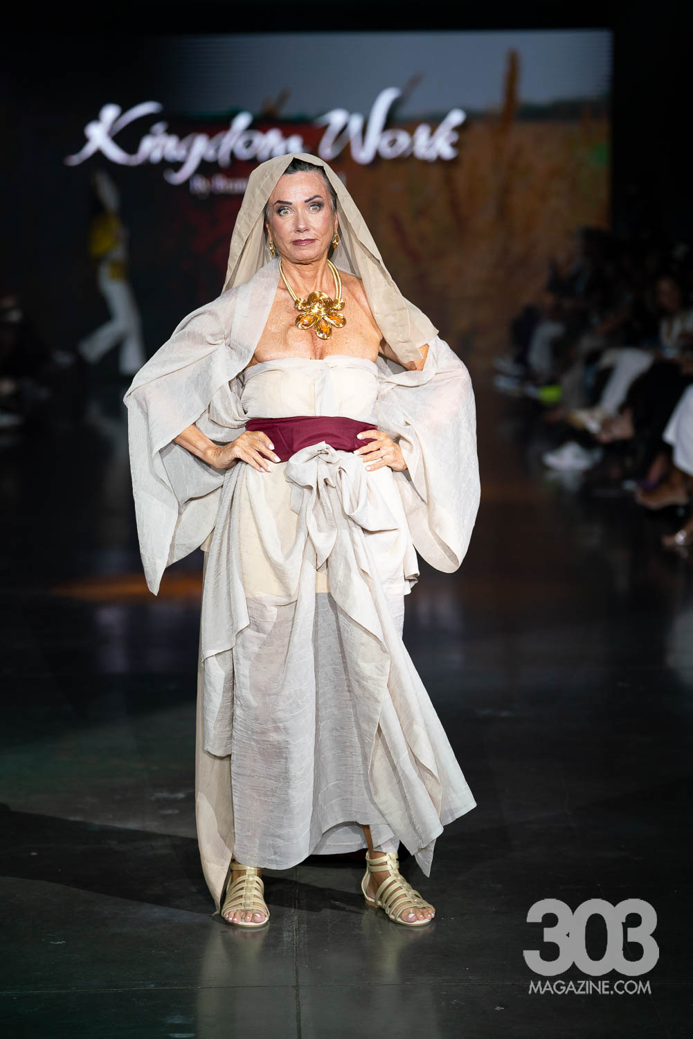 Brandi McMichel brought a powerful and thought-provoking presence to the runway with a collection titled “Kingdom’s Work.” Each meticulously constructed look carried a distinct biblical theme, with garments boldly featuring messages like the verse Genesis 50:20 and the declaration, “March on, my soul; be strong.” The show made a striking impact as a pair of twins split the runway in perfectly matched ensembles, reinforcing the brand’s message of unity and strength. The final model stepped out in a stark white jumpsuit with “Abomination of Desolation” on the front, and “The abomination stands in the holy place” on the back, leaving the audience with a powerful visual statement that lingered long after the lights dimmed.