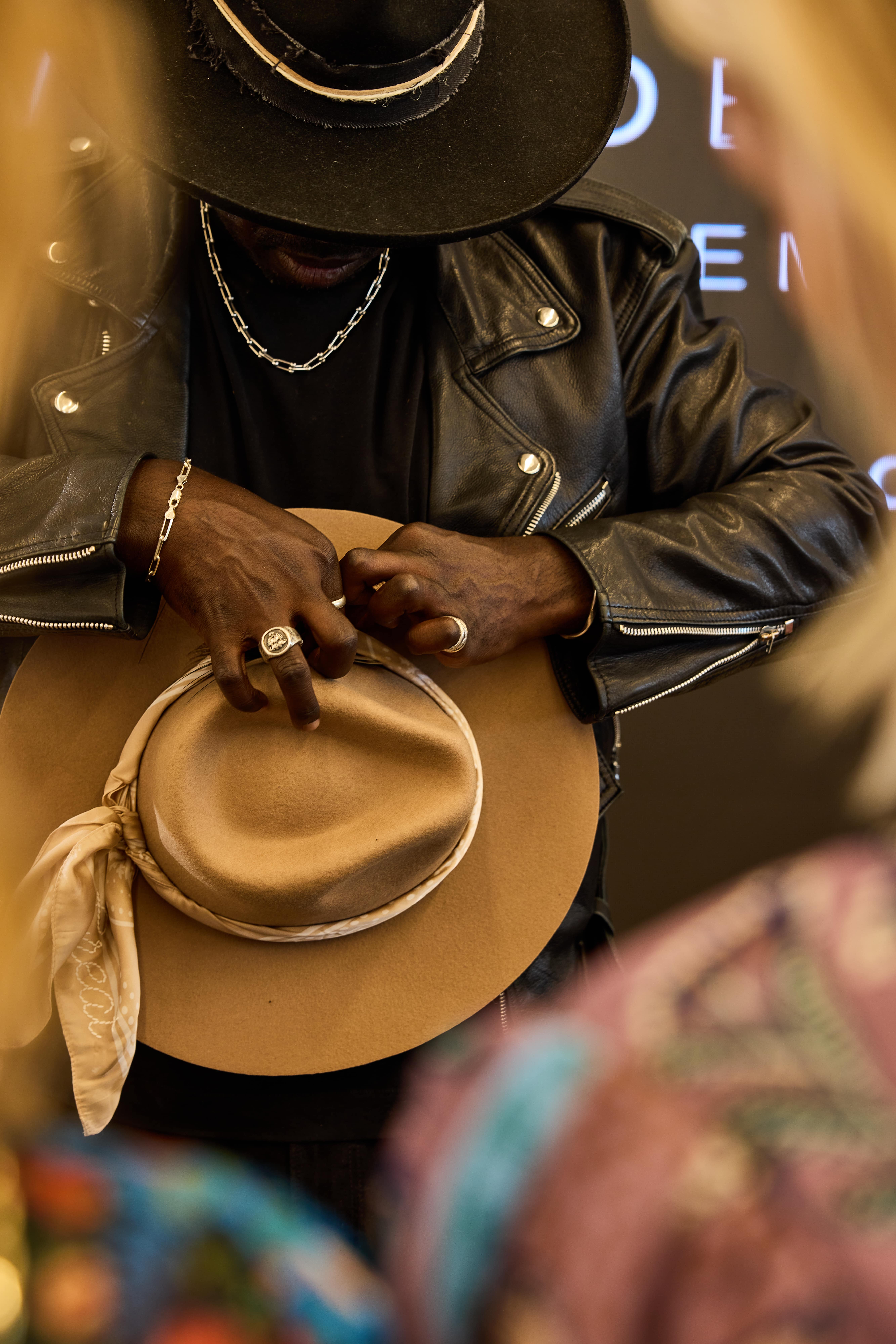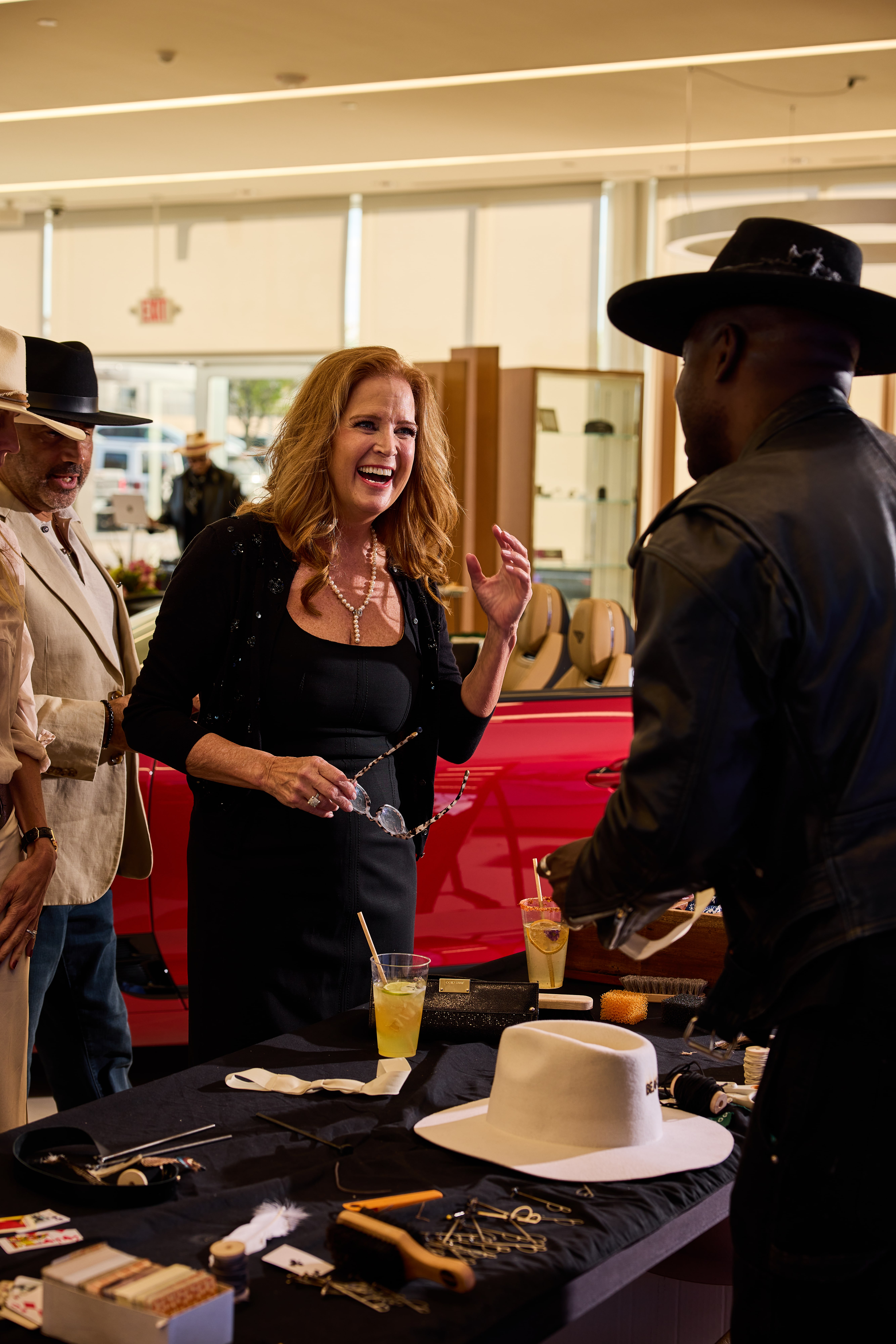 While certainly operating with an air of refinement, the event was nevertheless infused with rugged Colorado style. A select number of VIPs were invited to customize a bespoke hat with Bentley’s featured guest, Justin Great. At first known for his namesake streetwear brand, Great is now a multi-hyphenate entrepreneur in Denver. For his OUT WEST hat brand, he makes bespoke wide-brimmed hats using traditional western methods.