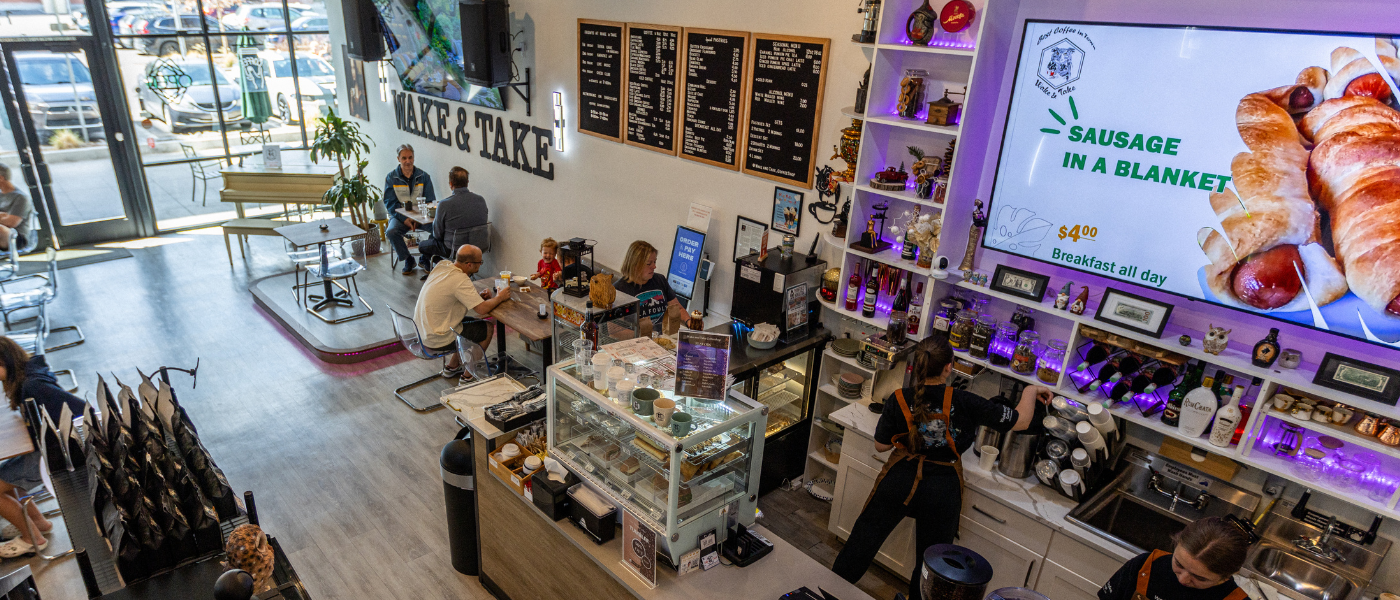Since opening its doors in 2020, the café has become a local favorite thanks to its welcoming atmosphere and distinct European flair. Under the guidance of owner Leonid Reznikov, Wake and Take has grown from a small coffee shop into a spacious gathering place, offering both high-quality espresso and a venue for events that celebrate connection and creativity.