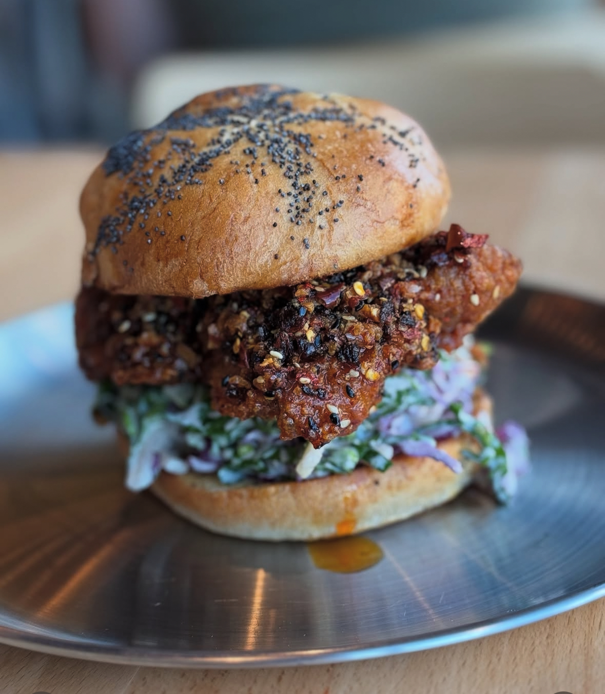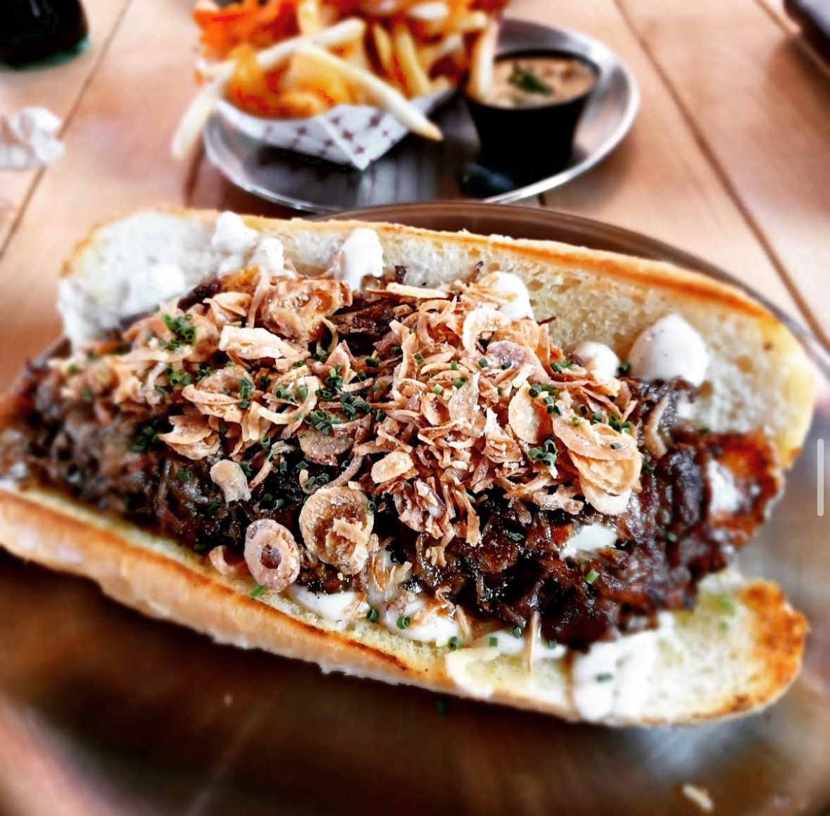 “While in the menu development stage we looked at what was the world’s fav burger. The burger that stuck out is the Big Mac. Personally, I prefer the double quarter pounder with cheese. So, we took the ideas of both and made our burger. It has some of the nostalgic flavors like the onions and dill pickles but mashed up together to create the dilly o’s (dill pickled onions). The Big Mac sauce is a basic 1000 island and we wanted to make a nod to that but also Colorado so we made a 1000 island-esque sauce with the substitution of a green Chile relish. Now you see the process of the two iconic burgers turned into our burger with our creative process. We love food but we also don’t take ourselves too seriously. We like to make things that may be familiar but are far better than you could make yourself at home. If it’s not better than the competition it’s not going on the menu.”