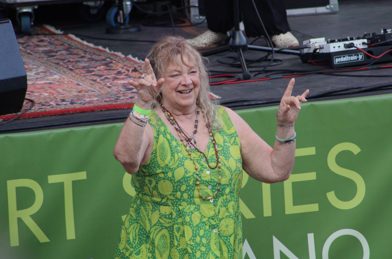 The warm summer evening began promptly at 6:30pm with Brandy’s upbeat hit “Big Day in a Small-town.” This tune has a Nashville-inspired sound, one that you would hear at the Bluebird Cafe on Broadway street. A fun, light and playful country beat that felt like we had hopped into her convertible off to a backyard barbecue. Immediately, crowd members were drawn to swing dance in front of the stage. They moved hand in hand without a care in the world. Up next was a topical, yet witty song for an eager and casual Colorado crowd titled “Get High.” She sings, “Sometimes the only way to get by, is to get high.” The audience shared smug smiles and mutual giggles while kids danced blissfully ignorant to her catchy country-twang.