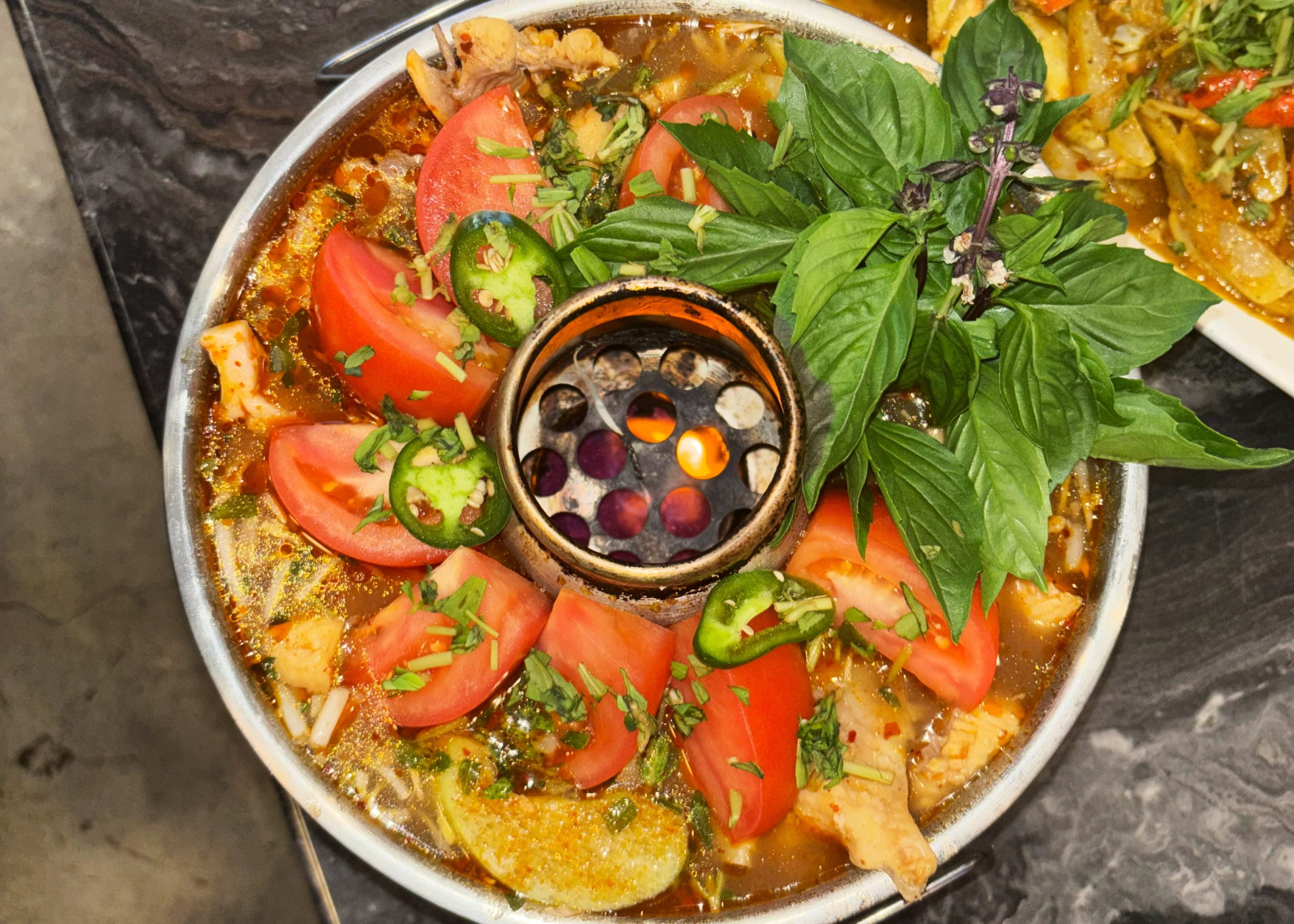 - Fire Pot Catfish Soup (Canh Chua Cá): This robust and aromatic soup combines tender slices of fish with a medley of fresh veggies, offering a harmonious balance of heat and zest. The catfish was so tender it fell apart in the savory stew and complemented well with fresh taro root.