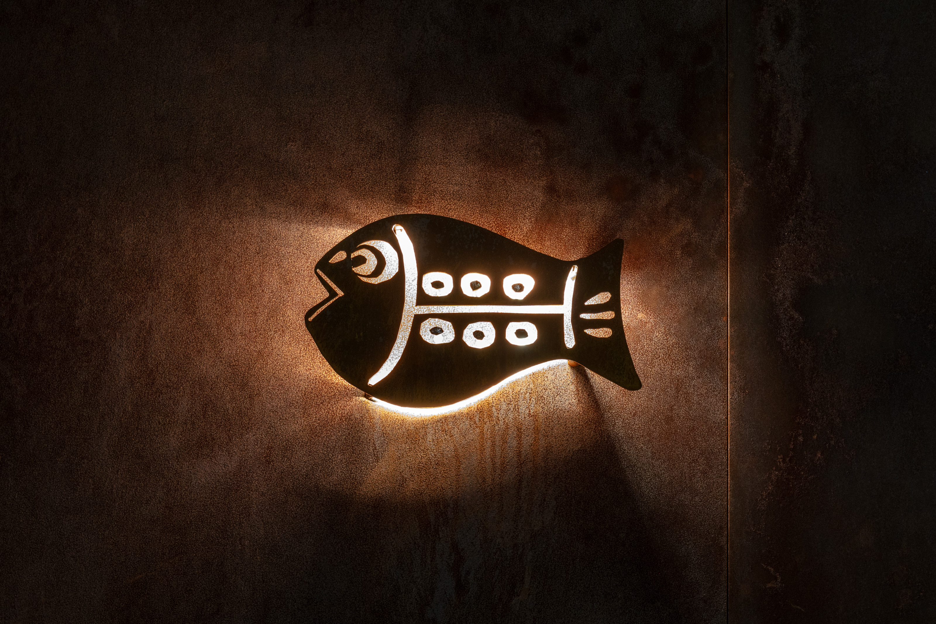 Bathed in warm light that catches glints of Japanese steel and shimmering ice blocks, built of bamboo and Siberian Elm and brought to life by the subtle sounds of cuts and sushi rice being pressed into a palm, Kizaki’s design is a celebration of the understated perfectionism that underlines the cuisine at hand. There are ceramic koi fish ice buckets for presenting selections from the unparalleled sake menu – curated by sake sommelier, Yuki Minakawa. There is a koi painting on the wall to match. The olive-green tile behind the range, behind the four-person team of cooks – which includes Chef Toshi himself – is the only other source of non-wood-tone color. The color then comes from the fish.