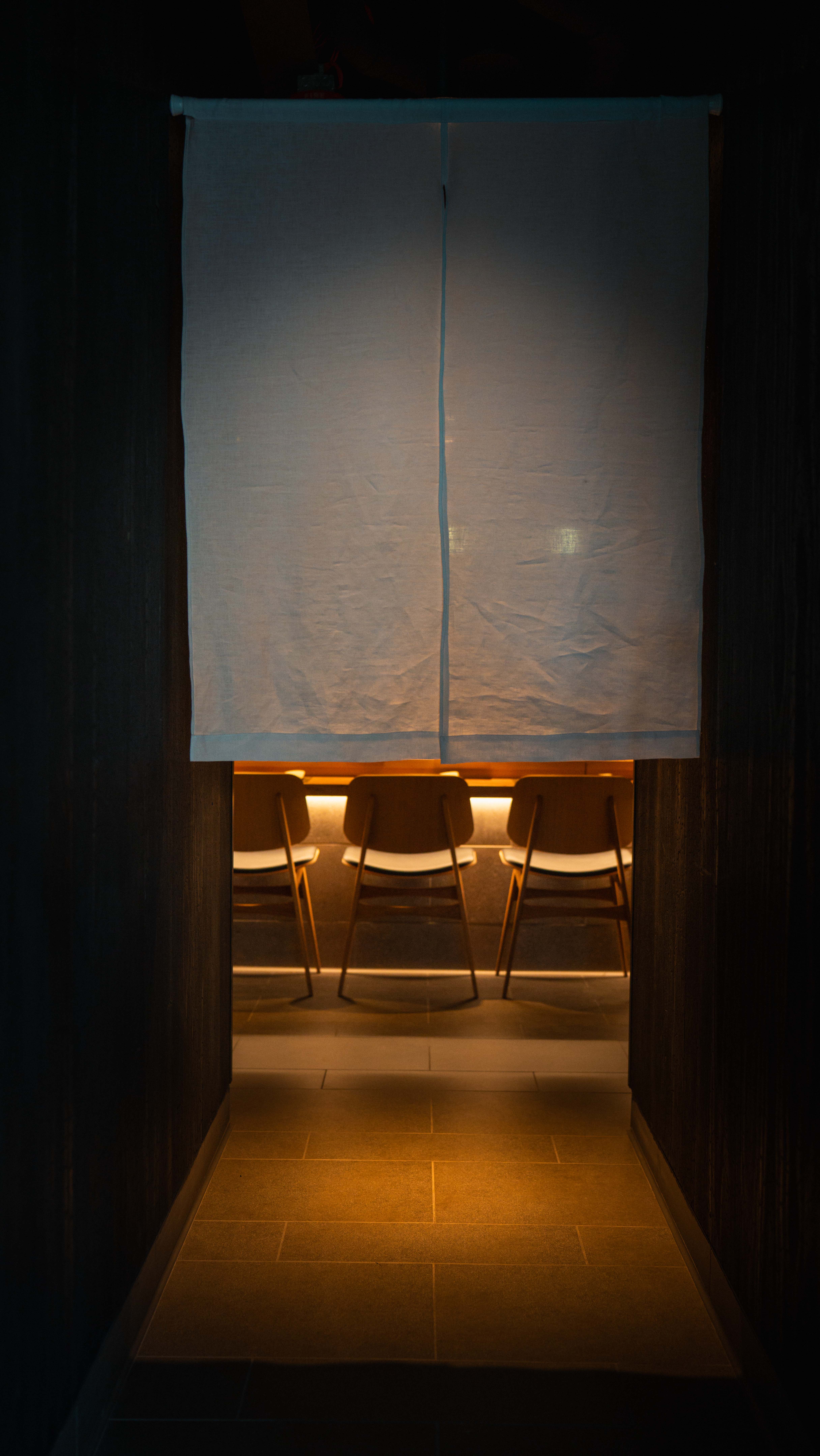 Walking through the sunbathed outer bar and à la carte dining room of Denchu – a sophisticatedly detailed space built by Sushi Den chef and owner, Toshi Kizaki and shared between his new self-titled omakase and Chef Justin Fulton’s Margot – a guest’s first impression of either restaurant is architectural. Something about the unrelenting focus on the design of everything from the space to the food itself feels apropos for two chefs whose primary connection to one another is the artisan – Kazu Oba – that hand-makes each restaurant’s plateware. Lightly treated wood panel detailed by overhead lighting leads from the entry corridor, through an open dining room filled with community tables, to a black limestone bar back meticulously spaced with top-shelf bottles. Floor-to-ceiling windows face the always evolving but still quaint South Pearl Street, while skylights flood the atrium with sunsetting warmth as both concepts open. For now – during Summer – that golden light extends well into later seatings.