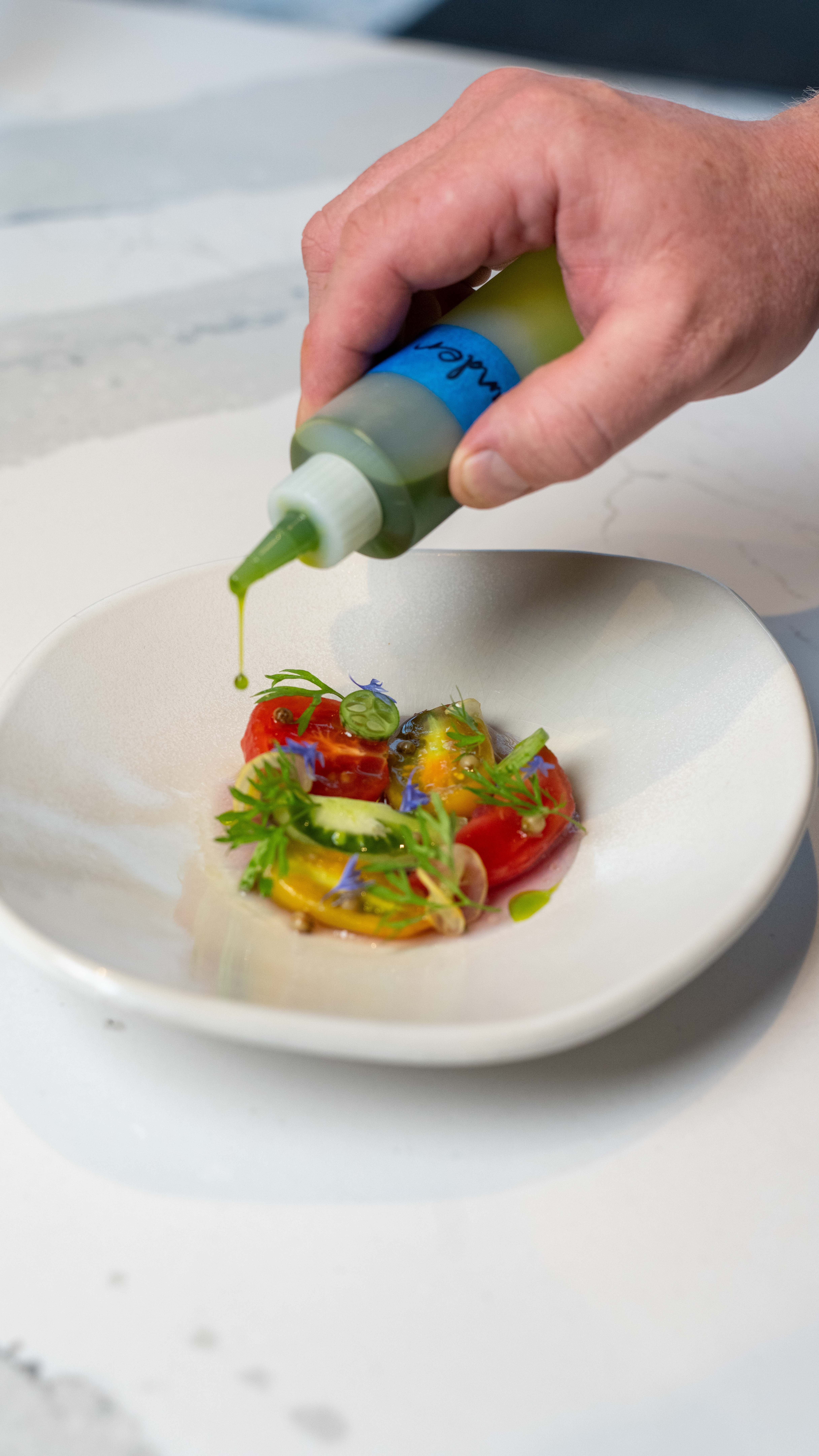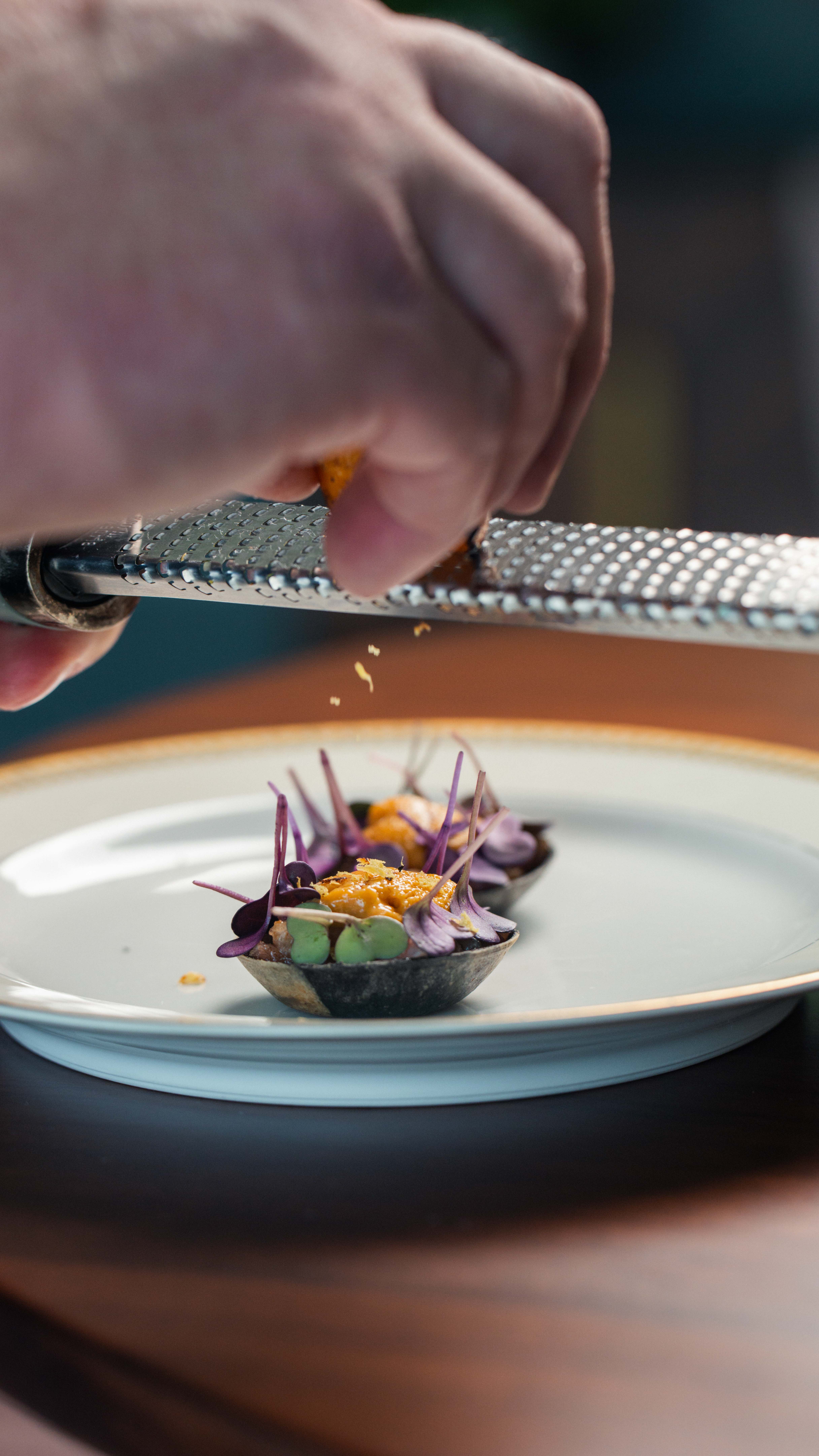 Focus, attention and detail are present in everything Chef Fulton plates. Attention to detail and intentionality intersect with local seasonality and refined technique to drive Margot’s every course. To start, a trio of colorful and vibrantly light bites. A Smoked Trout Tartlette balances its salt with the blooms of edible flowers, the Pâté Grand-Mère nourishes nostalgia with an arrangement of pork, chicken liver and pistachio, while a Chickpea Panisse boasts surprising but welcomed sweetness. Finding balance in the triplet of wide-ranging introductions sets the table for the broad yet balanced vision of the courses ahead.
