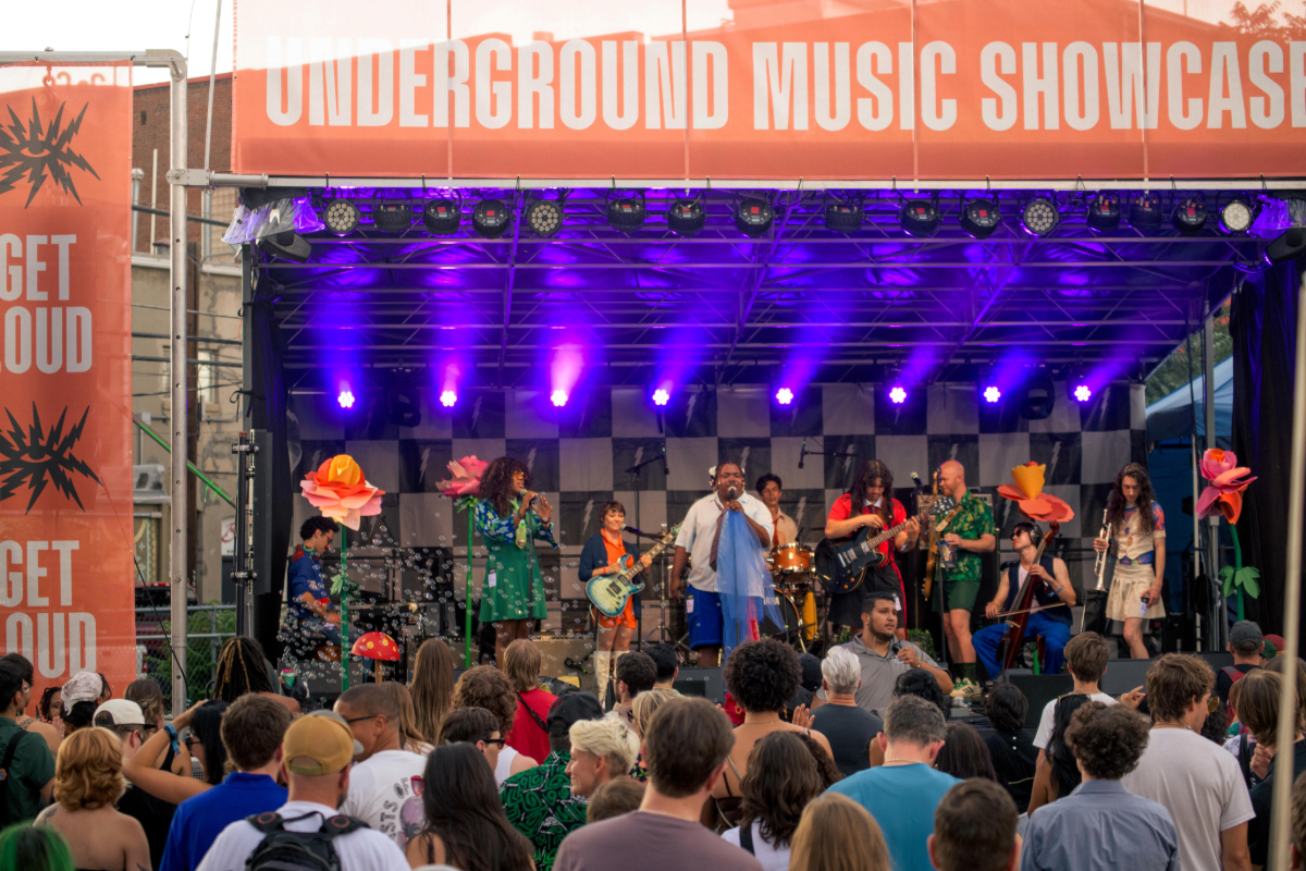 With the sun softly setting beyond South Broadway Street and pink clouds illuminating the sky behind them, dream pop locals Circling Girl waited for their set to begin at Banded Oak on Saturday of the Underground Music Showcase. Though they were delayed due to some technical difficulties, the quartet did not let this ruin their serene vibe in preparation for the music they were about to deliver to the audience. Still buzzing from their opening slot for Denver alternative band DeVotchKa at Levitt Pavilion back in June, Circling Girl took the stage, beaming with energy. Listeners in the crowd turned heads after familiar notes were played in the first few seconds of their set, starting to realize they had heard this group before. Guitarist Alison Flynn’s striking and powerful guitar playing had everyone in the crowd immediately bopping their heads along to the rhythm, followed by drummer Noah Thomas’ steady but full-of-life playing behind the kit. Layers of texture were added to this ghostly soundscape by Isabel Daninger and Devon Wellborn’s soft vocals and synth melodies. The band continued to play as the sun dipped behind buildings along the street, providing a calm before the storm that is the Saturday evening of UMS. Circling Girl’s peaceful pop set was the perfect way to guide UMS goers into more rowdy electronic-based sets further down South Broadway that evening.