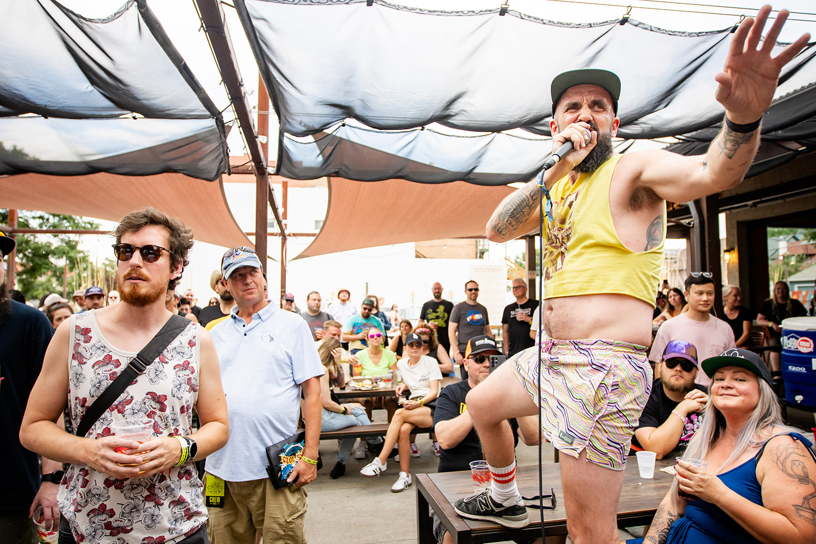 On Friday at Illegal Pete’s, Colorado’s own MF Ruckus unleashed a six-piece punk rock onslaught, channeling a raw, Viagra Boys-like edge throughout their set. It was their punk-fueled savagery that thrilled the packed patio. The band’s frontman stormed through tracks like “Balls of Steel,” leaping onto tables as a big crowd were captivated by what they were experiencing. Photographers chased his eccentric, action-packed moves, capturing his bond with fans who filled the space. The band’s gritty anthem “All My Heroes Are in Hell” ignited a sing along, while “Be Cool” hit with barbaric force. As local legends, MF Ruckus stood out for radiating kindness despite their badass stage presence, giving big thanks to their fans and highlighting the importance of the Denver music scene and supporting local music, local business and supporting yourself, showing how nice they truly are. Their Colorado roots and kindness earned them a rightful spot in UMS’s final spotlight.