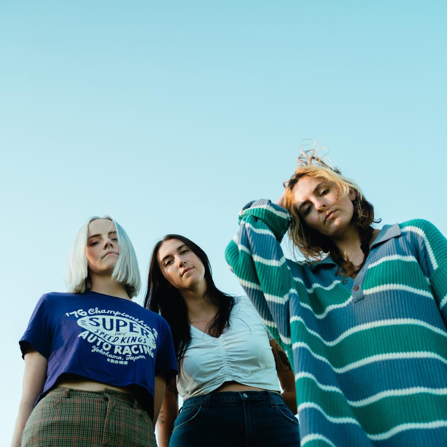 The sun was beaming down aggressively onto those eagerly awaiting The Velveteers’ highly anticipated set at the Showcase Stage on the final Sunday of the Underground Music Showcase. The asphalt of the Goodwill parking lot heated up enough to be felt under the feet of audience members, but it didn’t faze them much as they were already dancing along to the DJ set, the predecessor for The Velveteers. Following a short soundcheck, the walk-on song for the trio began, and the crowd’s anticipation could be felt in the air, the excitement that was bubbling in anticipation of the set about to begin. Members Demi Demitro, Jonny Figg, and Baby Pottersmith all strut onto the stage with a confidence about them that was not only seen but felt. Demi strummed her baritone electric guitar with force, and the energy in the crowd exploded, excitement being released in whoops and hollers. The unusual setup of one baritone guitar player and two drummers often leads many to wonder what their sound is like. Still, after one song, listeners could understand that this arrangement was perfect for the trio’s energy and songwriting style. The three continued through their high-energy set, ripping songs from their most recent album, A Million Knives, and older tunes, as well. Familiar to the UMS stage and what it means to Denver residents, The Velveteers gave all that they had and pooled all their energy into what would be their last-ever set at the Underground Music Showcase. From the very first note to the last strum and hit from Demi, Jonny, and Baby, everyone was hypnotized by their electric energy and dynamic songwriting, leaving this performance as a fantastic ending to UMS 2025.