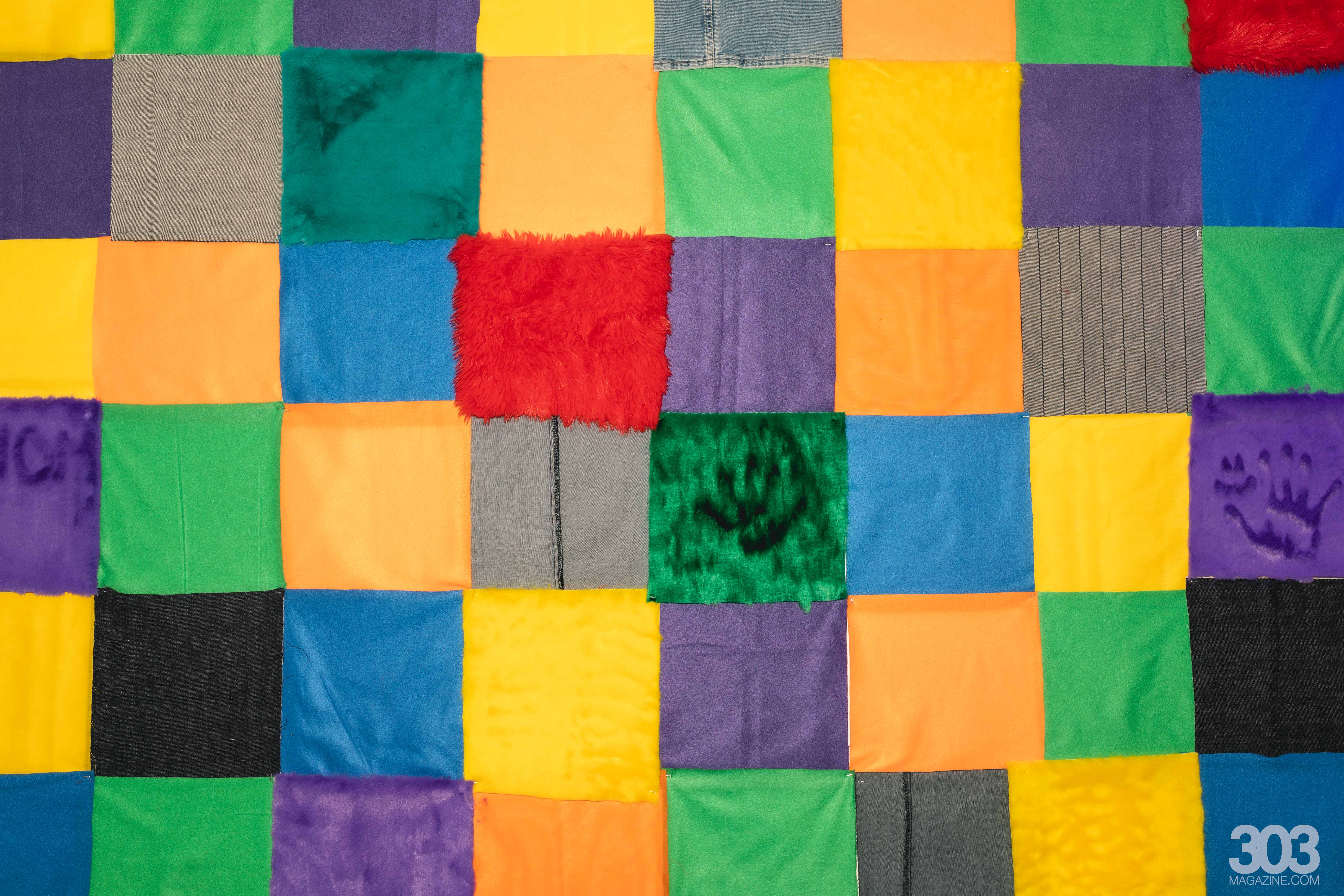 The exhibit itself was a masterclass in patchwork and an immersive experience in every sense. Colorful patchwork colored the walls, made up of fabric squares in both bold primary colors and softer tones. But these juxtaposed tones weren’t the only unexpected combinations: the patchwork included a mixture of textures from rough denim and canvas to soft plush and velvet.