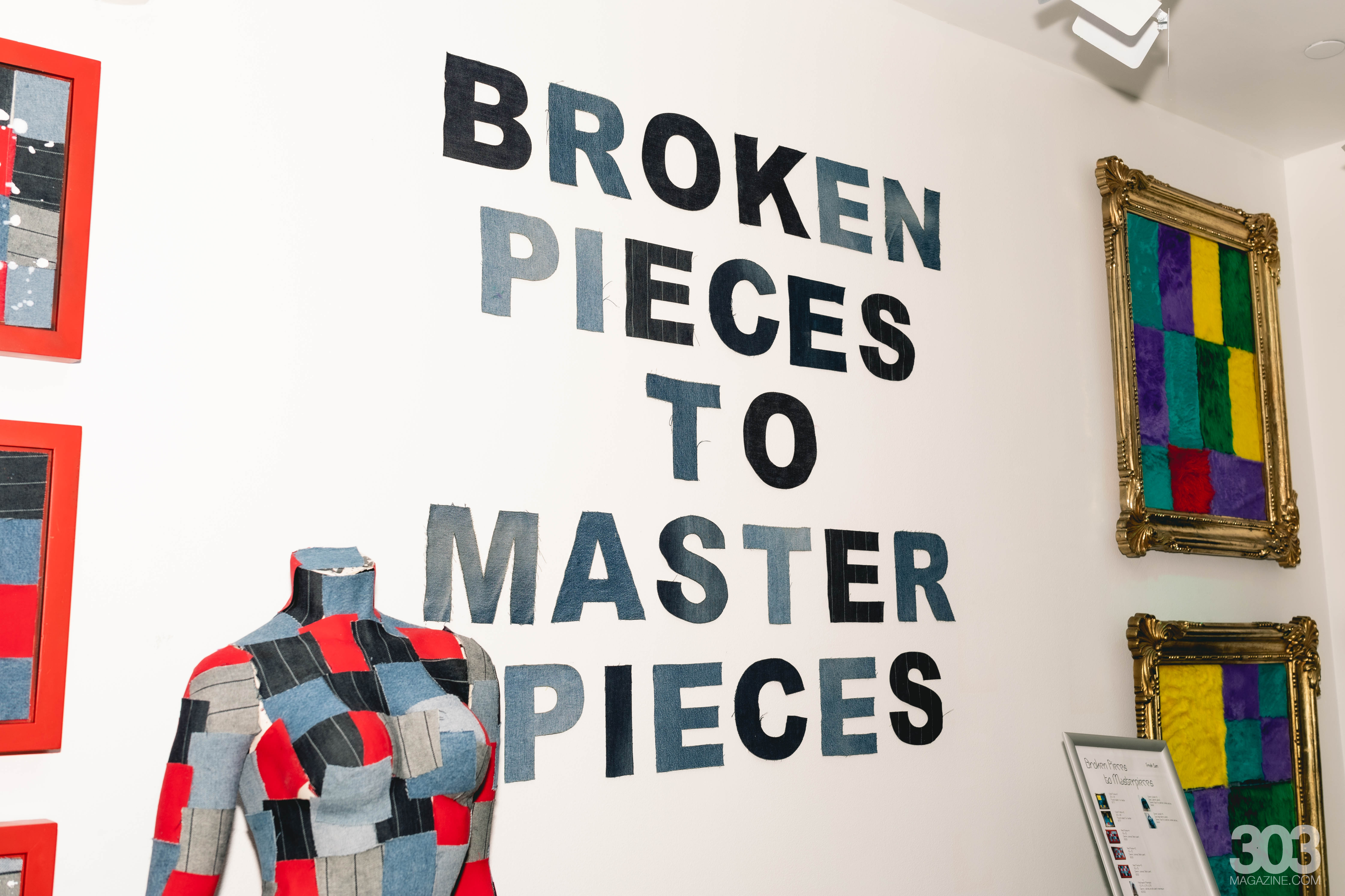 Altogether, these details made the name of the collection powerfuly emblazoned on one wall in various shades of denim all the more poignant. Fresh Sam’s exhibit transforms what might be seen as fragmentation of color, texture and material into a powerful visual metaphor for connection and resilience.