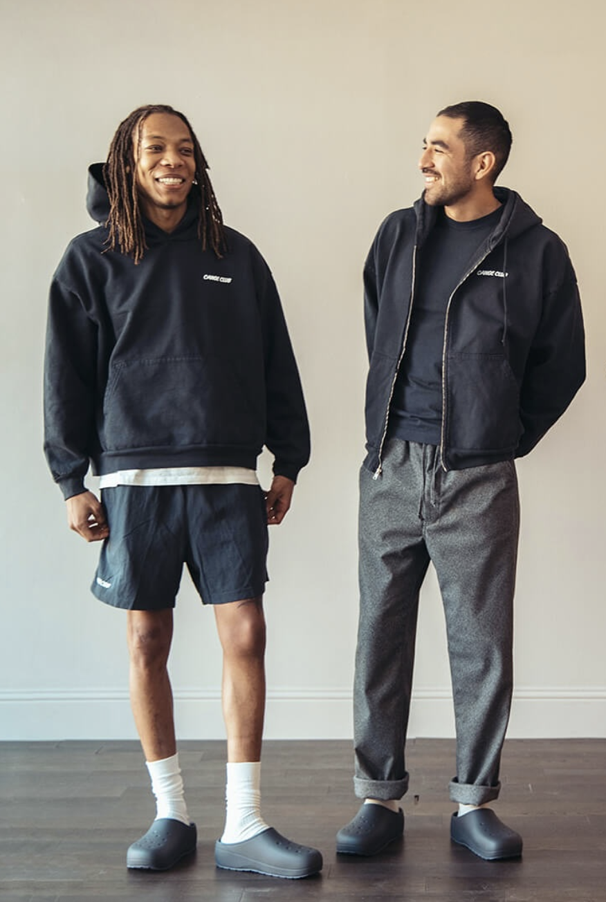 Their summer lineup includes breezy camp shirts, lightweight jackets and easy chore coats that transition seamlessly into cooler months. Even the accessories: like selvedge bandanas, indigo-dyed socks and handcrafted sandals—carry the same sense of care and craft.