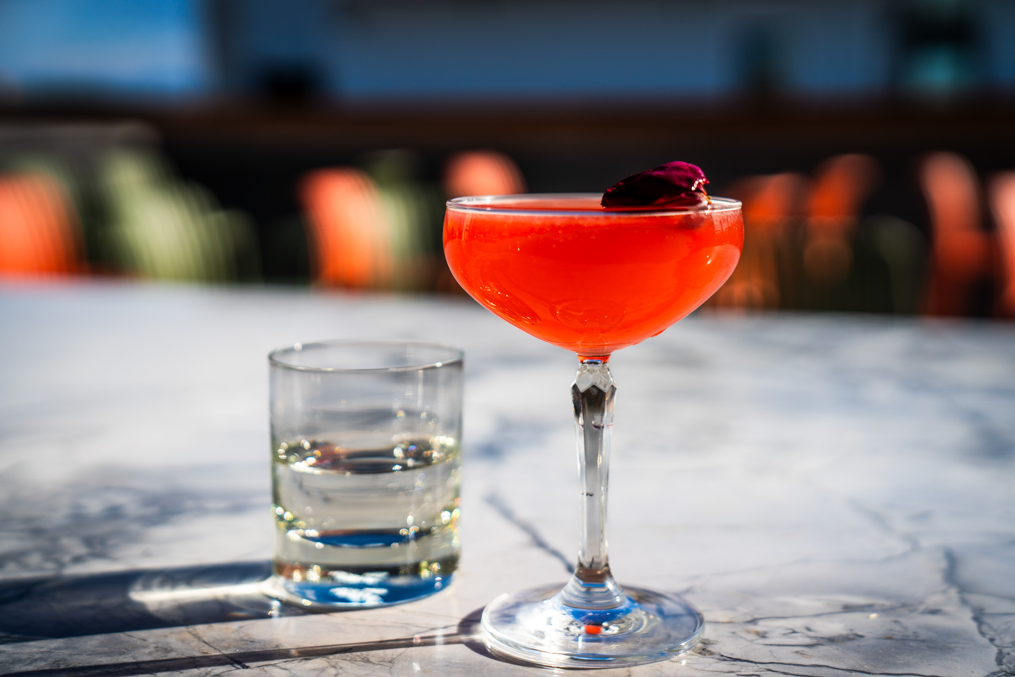 Rose, the rooftop space, leans into warmth and ease. By day, it’s bright and unhurried with low-slung lounge chairs and panoramic views. As the sun goes down, the mood sharpens. Cocktails grow bolder. Conversation pulls in closer. The shift is subtle but intentional.