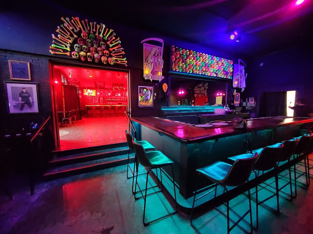 The Lowdown: Hosted by the Honor Farm, do not miss the hidden gem upstairs called Hell or High Water Tiki Bar. With its lush, gothic meets tropical decor, it is a decadent escape for the spooky at heart. The cocktails are as exciting as the atmosphere: try the Passion of the Christ for a bloody sweet thrill, or go all in with Spread the Dead for a drink simply to die for. For bites, head back downstairs and sink your teeth into the Vindaloo Chicken Birria Tacos or the Mushroom Nuggets, both frightfully delicious. It is a hauntingly good time you will not want to miss.
