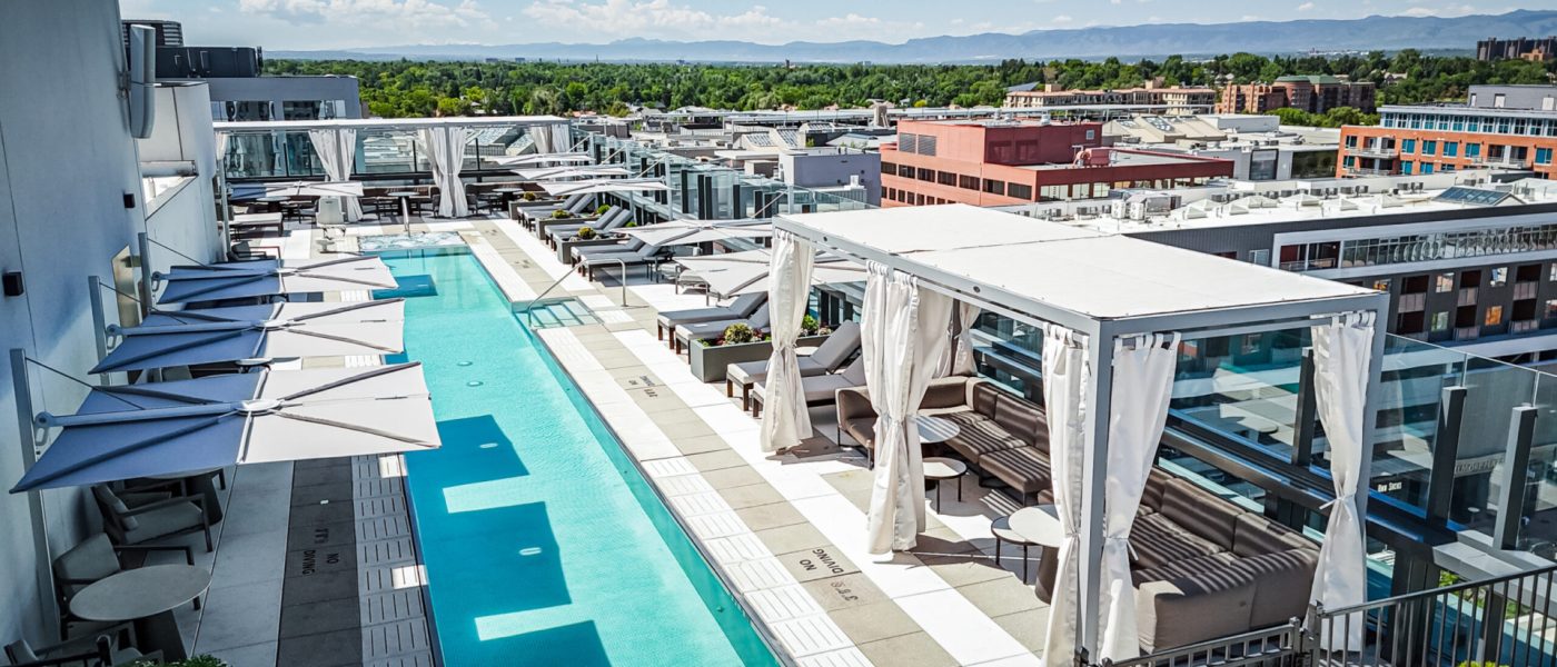 For those looking to stay in town and enjoy a little luxury, Cherry Creek’s hotel rooftops have you covered. Both The Halcyon and The Jacquard (pictured) offer day passes to their prime rooftop pools. The views, drinks, and the water will have you forgetting the heat in no time. Reserve a cabana to enjoy your cocktail in full lounge mode, or stick around The Jacquard after the sun goes down on the weekends to catch the DJ spinning until close.