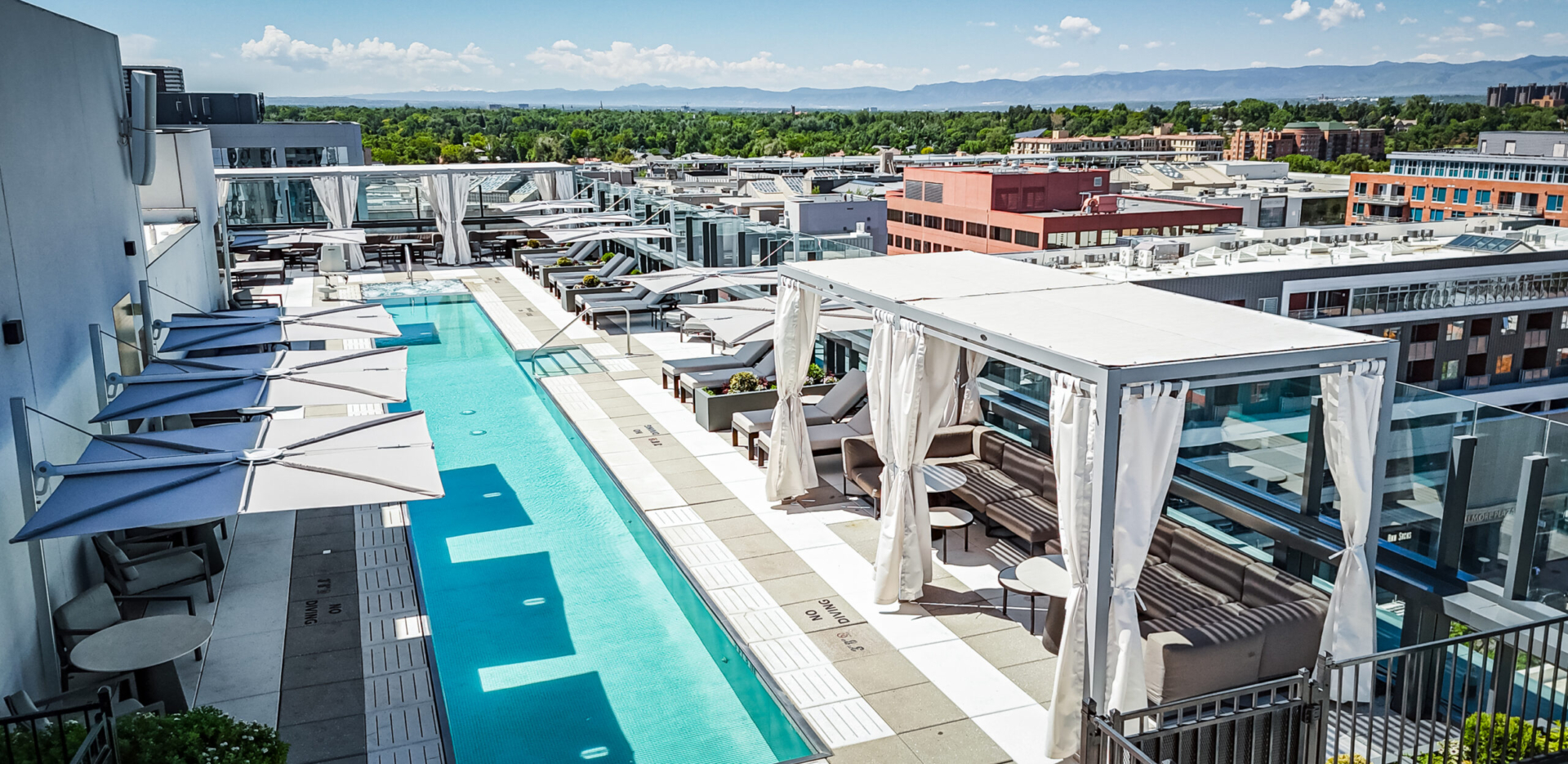 For those looking to stay in town and enjoy a little luxury, Cherry Creek’s hotel rooftops have you covered. Both The Halcyon and The Jacquard (pictured) offer day passes to their prime rooftop pools. The views, drinks, and the water will have you forgetting the heat in no time. Reserve a cabana to enjoy your cocktail in full lounge mode, or stick around The Jacquard after the sun goes down on the weekends to catch the DJ spinning until close.