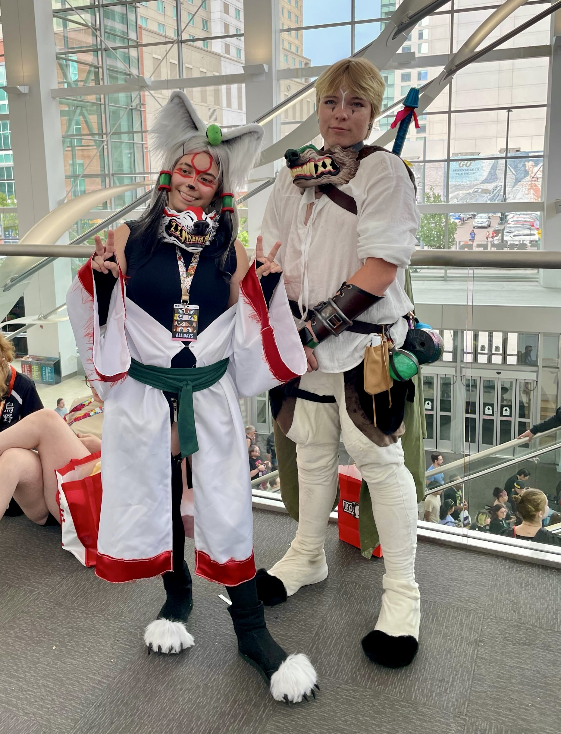 For Mags and Link, who were cosplaying wolf-inspired versions of characters from Ōkami, comfort was key: “Water. Always water,” Mags said without hesitation. “And some sort of bag. Good lord, you need a bag — even if you’re not buying anything, just to hold the stuff you have.”