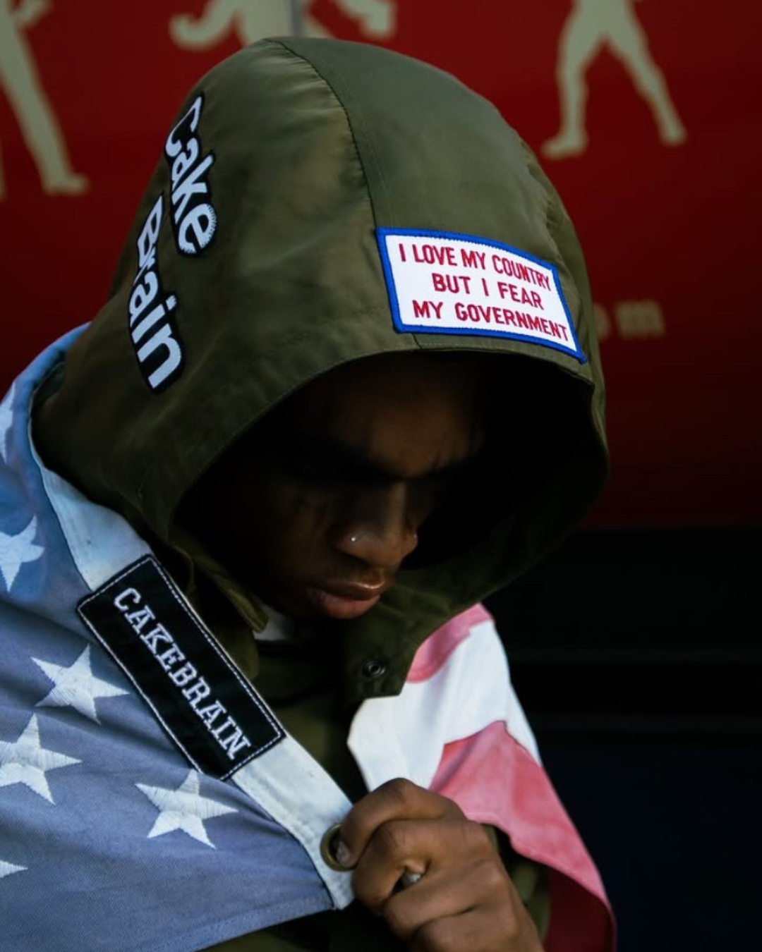 His streetwear collection was as provocative as it was cohesive, combining repurposed military symbolism and weaponry with explicit statements of protest and mistrust for the American government and authoritarianism.