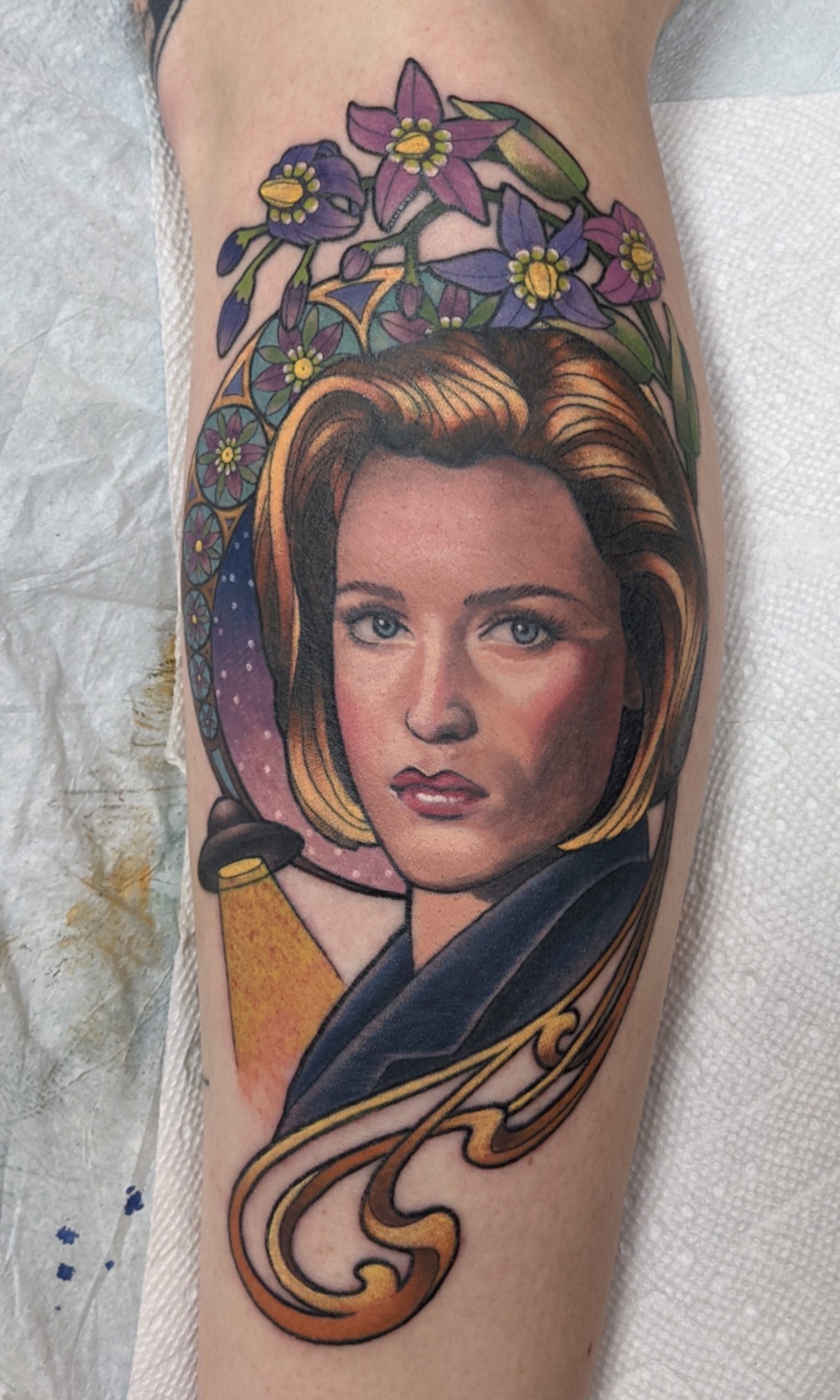 Perkins’ initial attraction to tattooing came from the desire to bring fine art into tattooing. “I didn’t realize it could be an art form. As my mom said, tattoos are for sailors and street walkers,” she laughed. “I was trying to bring my education and apply my art in a boujee and pretentious way,” she continued, still revealing her endearing penchant for sweet but sardonic humor. “I realized I was being an asshat.”