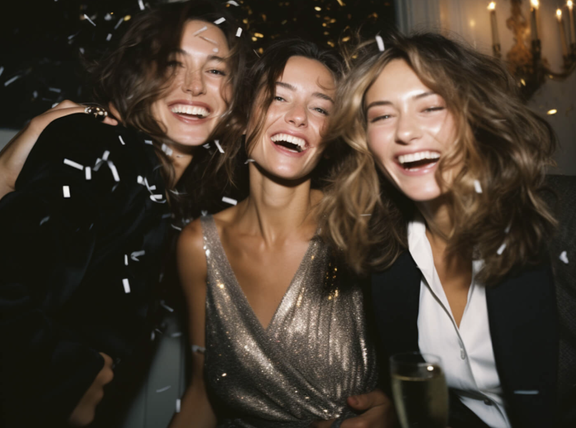 Women: Consider a stylish jumpsuit, a sequin or metallic skirt paired with a sophisticated top (e.g., a leather jacket and mockneck top), or a fit-and-flare sweater dress. Dark wash, dressed-up denim can even work if paired with a silky cami and pointed-toe boots.