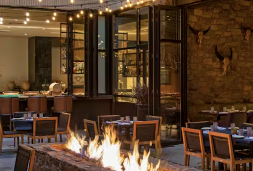 Features a large, heated patio that is covered to stay open even on chillier days, provided the temperature is above 50°F.