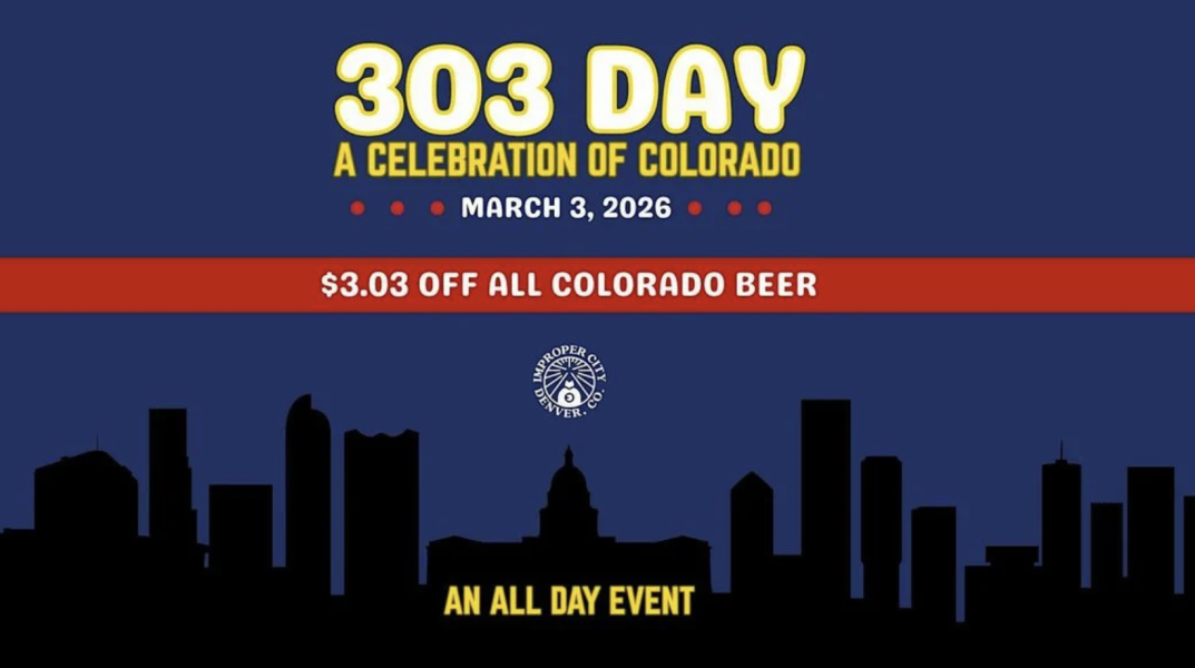 There’s no better way to toast the Mile High spirit than with a proper 303 Day celebration. On March 3, 2026, head to Improper City for an all-day tribute to everything that makes Colorado one of a kind — community, culture and craft beer included.