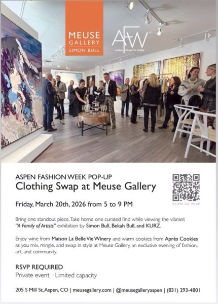 The exhibition debuts the same evening as the Aspen Fashion Week Pop Up Clothing Swap at Meuse Gallery Aspen, creating an immersive celebration of art, fashion, and community. Guests will enjoy first access to newly released works and collector favorites in an elevated, high-energy environment. This exhibition will be on view for a limited time only. Collectors are encouraged to attend opening night for priority selection and early acquisition opportunities.