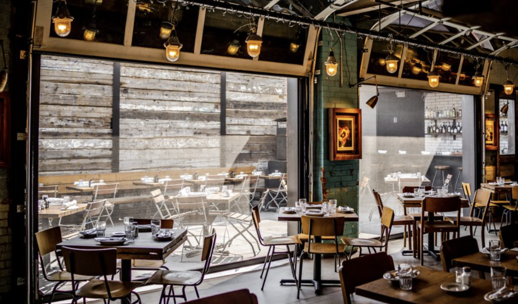 Why Go: Elevated brunch in a polished, sun-drenched patio setting.