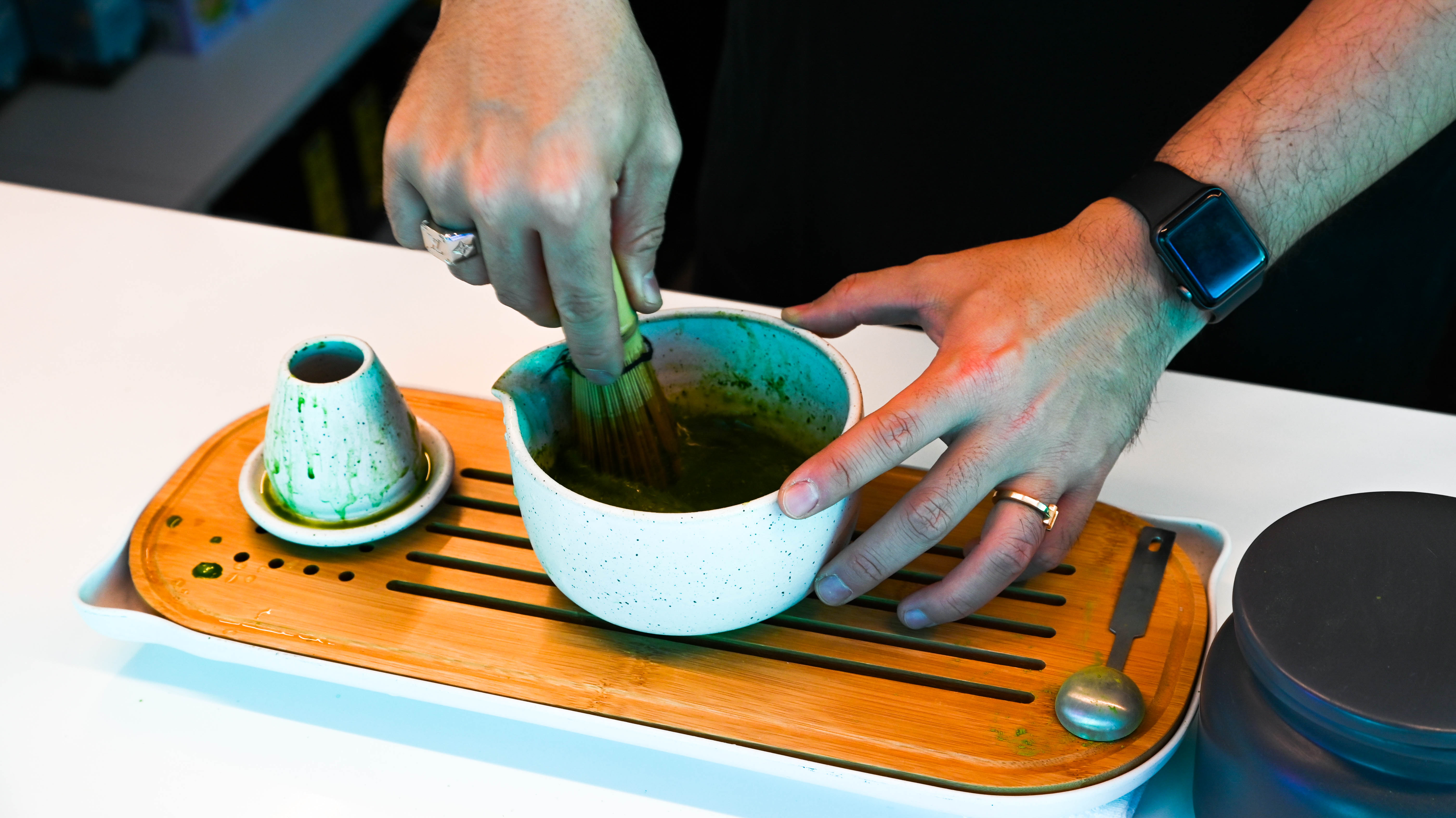 Similar to other locations, the matcha is hand whisked to order in plain view like performance art. While soothing whisk sounds fill the air, waves of mirror-like chrome reflect off the wall. This new matcha café is a natural progression of the Third Culture brand as both Butarbutar and Shyu were looking to open more locations. Along with a new look, the menu has also received a few additions alongside the same mochi doughnuts and muffins infused with southeast Asian flavors like jasmine milk tea, yuzu lemon, ube coconut, black sesame and mango passion fruit.