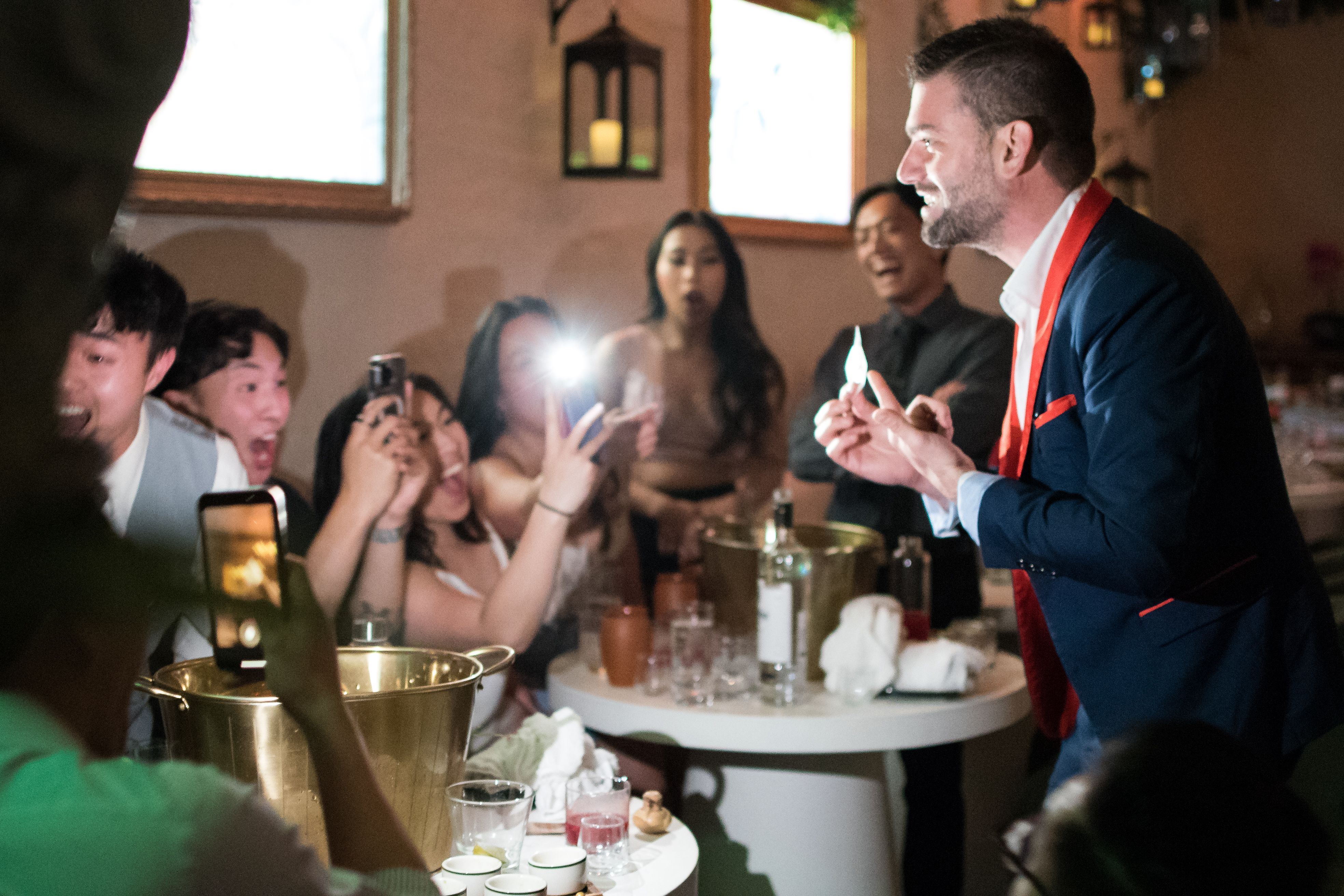 Imagine the gasps of delight as wedding rings vanish and reappear, or the joyous laughter as items from the bride and groom levitate into the air. Mannsz’s wedding magic goes beyond entertainment; it’s a testament to the extraordinary nature of love, creating a magical ambiance that elevates the entire celebration.