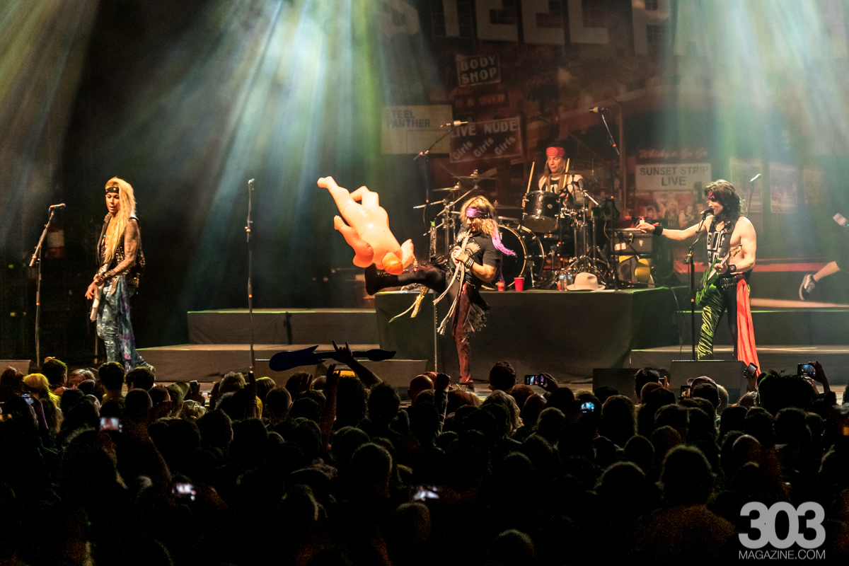 The big hair bands and heavy metal music from the 80s seem to be long gone, until Steel Panther steps on stage. From the hairspray, leather pants, and makeup to the raunchy lyrics, comedic banter, and 80s rock cover songs, Steel Panther turned the Fillmore Auditorium into a flashback 80’s party filled with raunchy original songs and 80s rock and roll covers. They have a reputation for not just performing a concert but throwing a party, and they didn’t disappoint during their latest visit to Denver. Love Stallion opened the show.