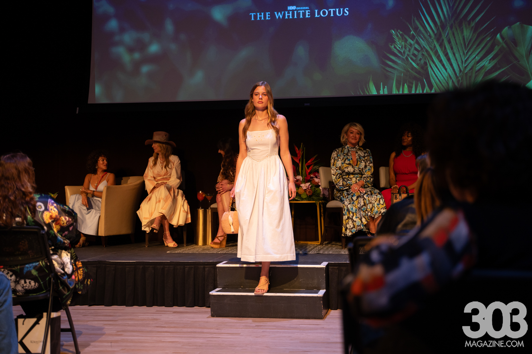 SeriesFest hosted a stylish evening honoring The White Lotus costume designer Alex Bovaird with the “Excellence in Costume Design” Award. In collaboration with Matthew Morris Salon, A Line Boutique, Worth Style, and Wilhelmina Denver, the event featured a fashion runway inspired by the show. All of the looks on the runway were styled by Amber Fries. Guests enjoyed a pre-event cocktail reception, a display of iconic costumes from the series, remarks from Bovaird, and a showcase of high fashion influenced by the award-winning HBO hit. Photography by Kiddest Metaferia