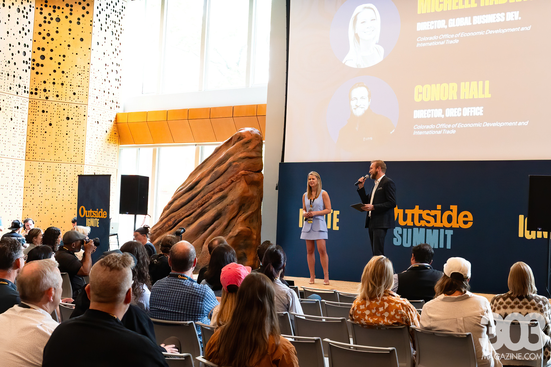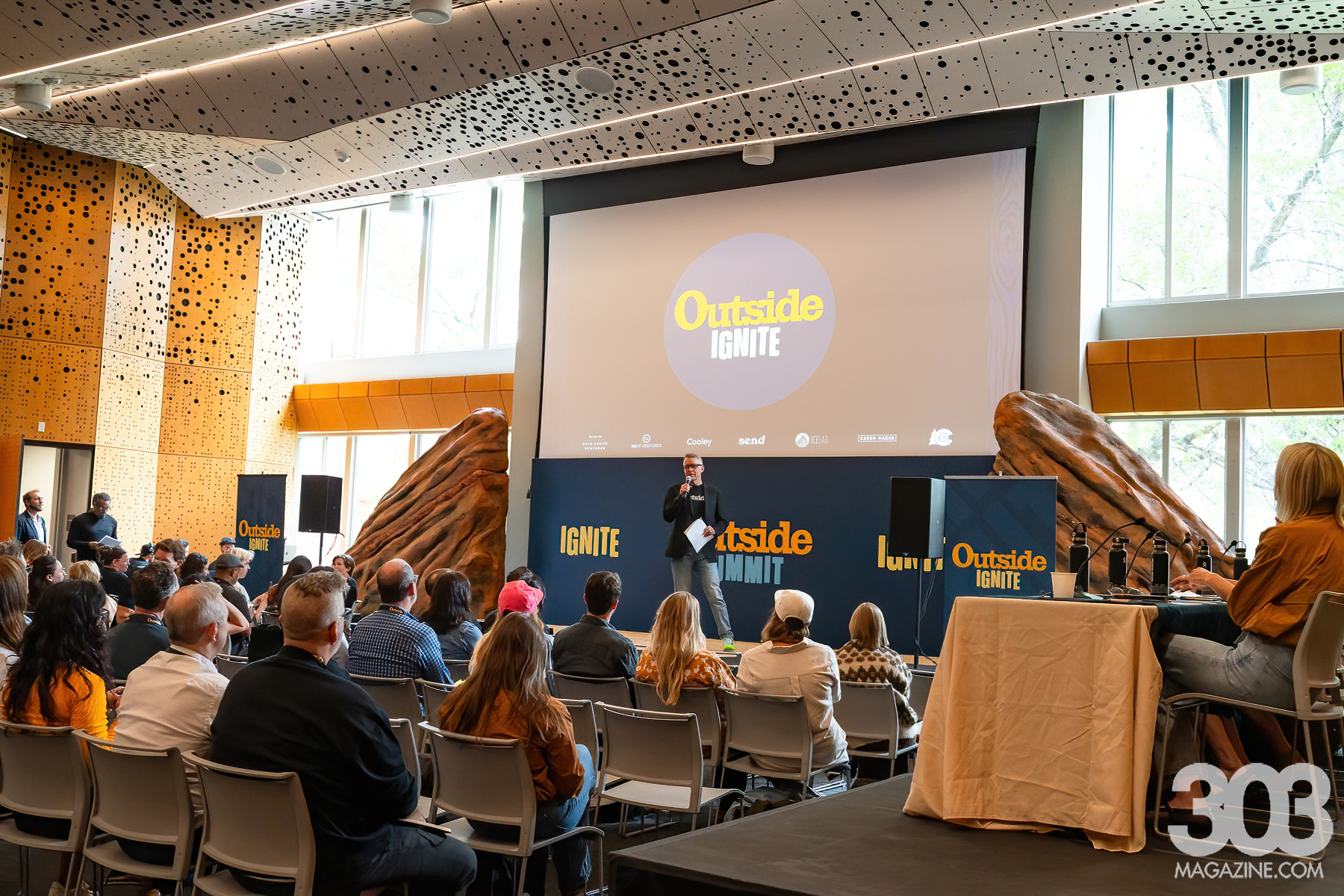 Denver officially kicked off the Outside Summit today with the debut of the Outside Ignite pitch competition. Five up-and-coming startups from the outdoor and active lifestyle space took the stage to pitch their ideas in front of judges and a lively crowd, all vying for a $100,000 prize package in cash and advertising. The event also featured a People’s Choice Award, presented by REI Co-op Path Ahead Ventures, giving the audience a chance to vote for their favorite concept and reward another standout with a separate prize. Photography by Kiddest Metaferia